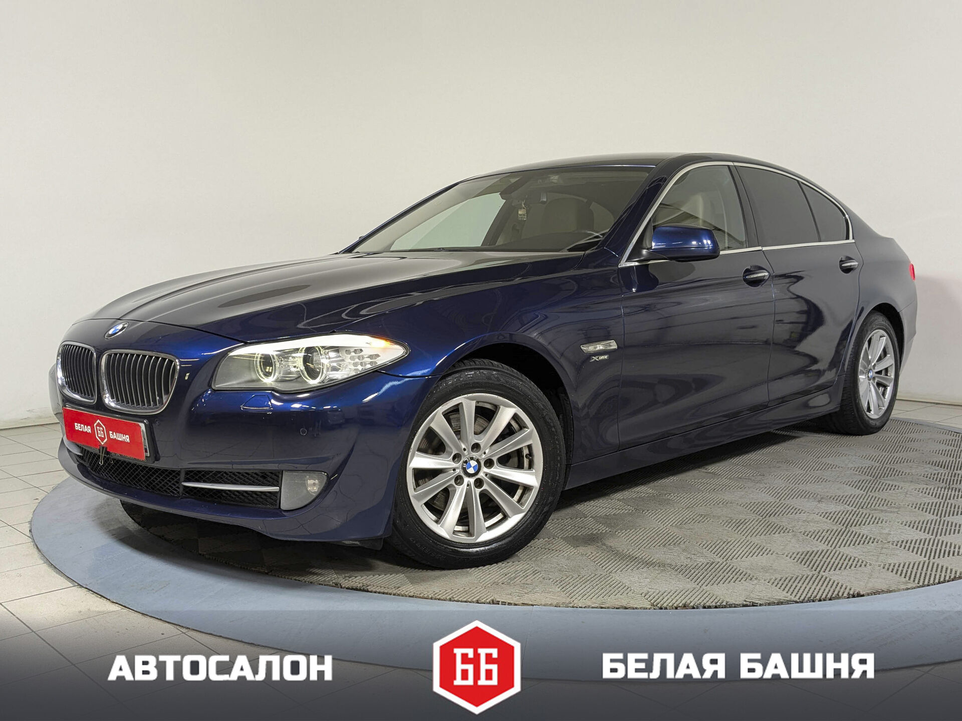 Автомобиль BMW 5 series с пробегом 217 000 км, седан 2012 года выпуска. Цвет кузова синий, коробка передач автомат, полный привод, левый руль. Двигатель 2.0 л. с мощностью 218 л.с.