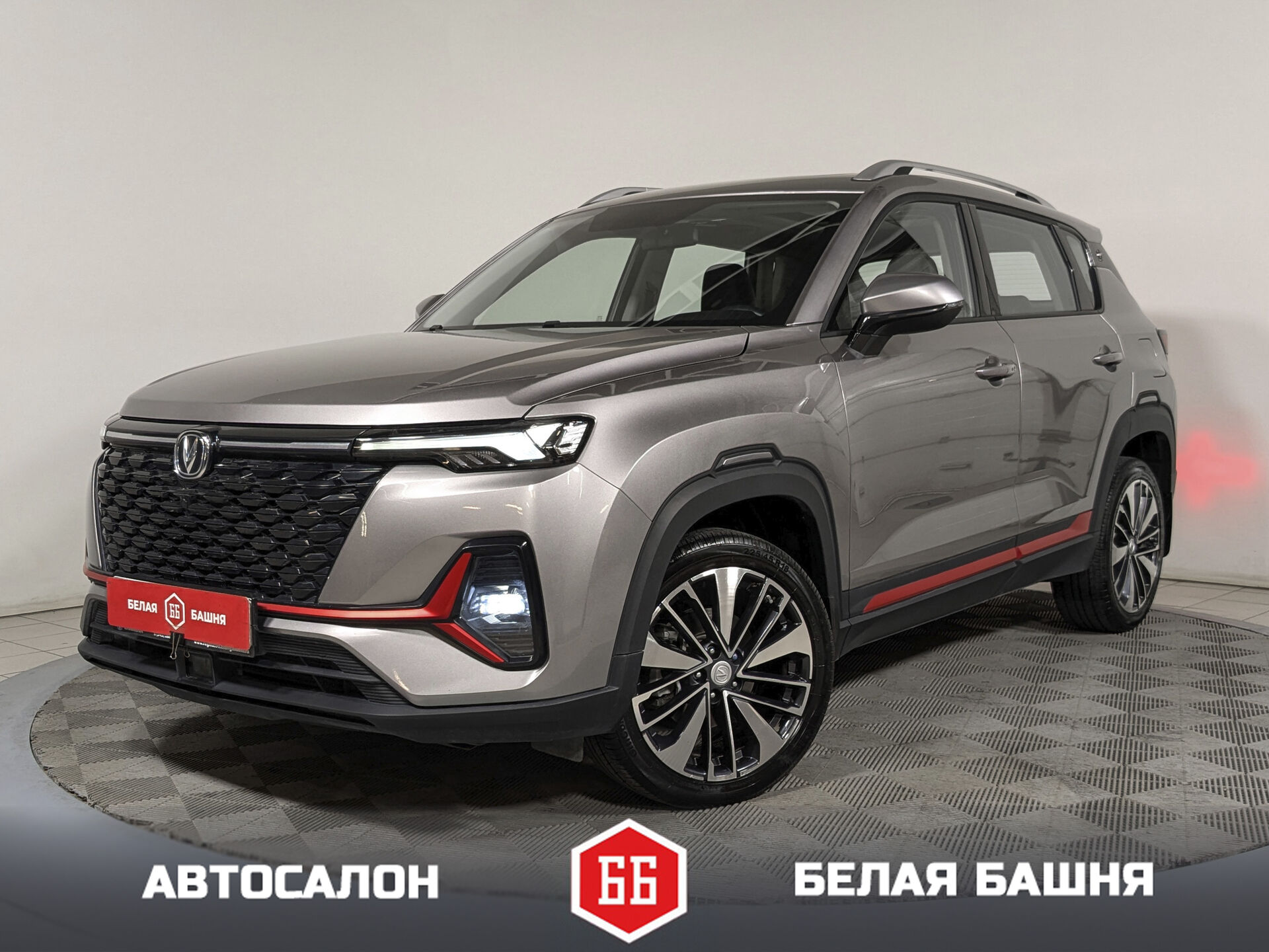 Автомобиль Changan CS35 Plus с пробегом 60 500 км, внедорожник 2023 года выпуска. Цвет кузова серый, коробка передач робот, передний привод, левый руль. Двигатель 1.4 л. с мощностью 150 л.с.