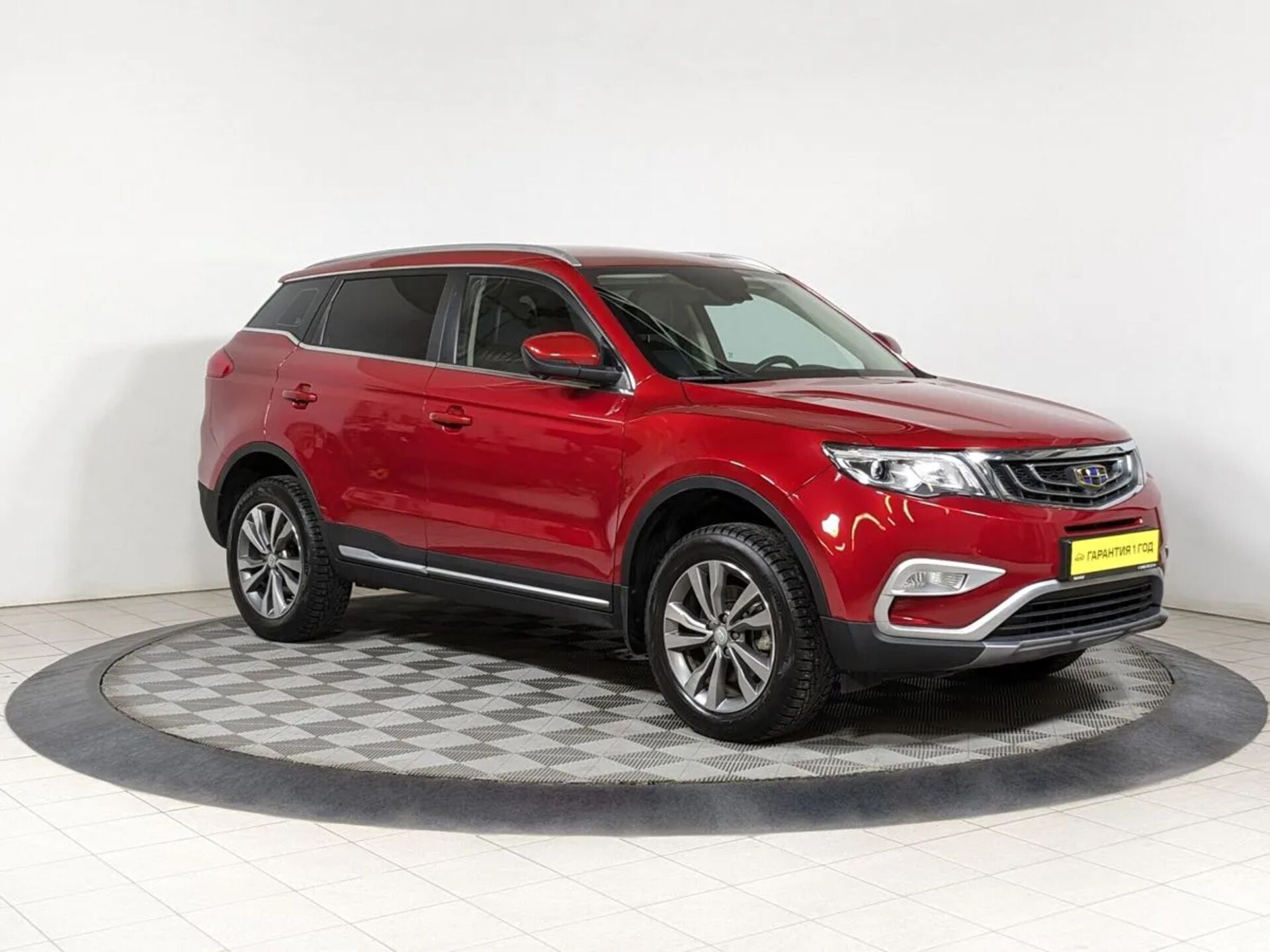 Автомобиль Geely Atlas с пробегом 50 000 км, внедорожник 2021 года выпуска. Цвет кузова красный, коробка передач автомат, передний привод, левый руль. Двигатель 2.4 л. с мощностью 149 л.с.