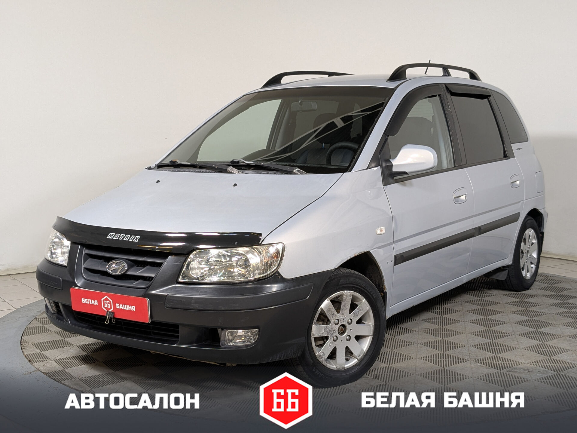 Серый кузов и вместительный салон с тканевой обивкой делают Hyundai Matrix удобным для повседневных поездок. Электростеклоподъёмники на всех дверях, кондиционер и подогрев передних сидений обеспечивают комфорт для водителя и пассажиров. Наличие подушки безопасности пассажира добавляет уверенности в надёжности автомобиля.