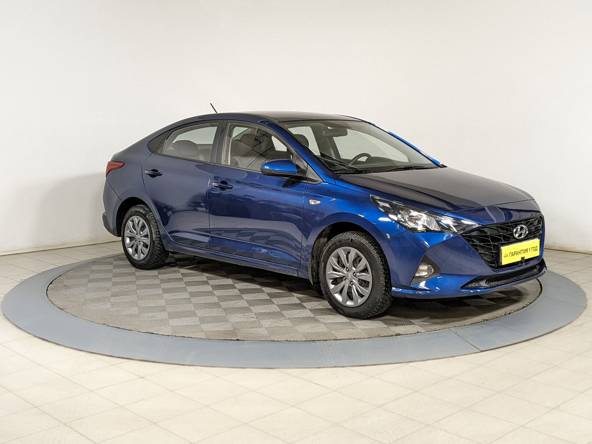 Автомобиль Hyundai Solaris с пробегом 17 500 км, седан 2021 года выпуска. Цвет кузова синий, коробка передач механика, передний привод, левый руль. Двигатель 1.6 л. с мощностью 123 л.с.