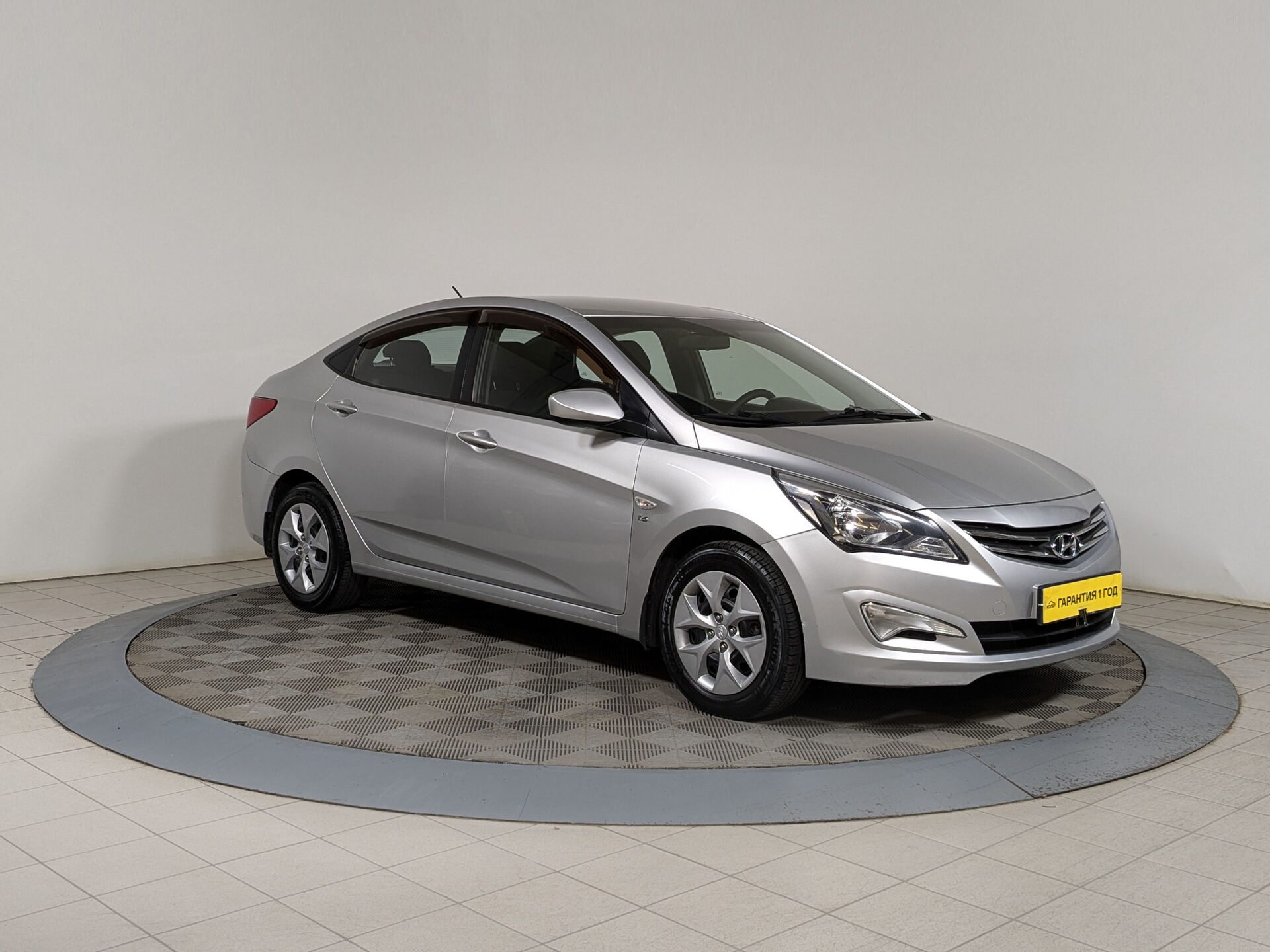 Автомобиль Hyundai Solaris с пробегом 181 000 км, седан 2016 года выпуска. Цвет кузова серебряный, коробка передач механика, передний привод, левый руль. Двигатель 1.6 л. с мощностью 123 л.с.