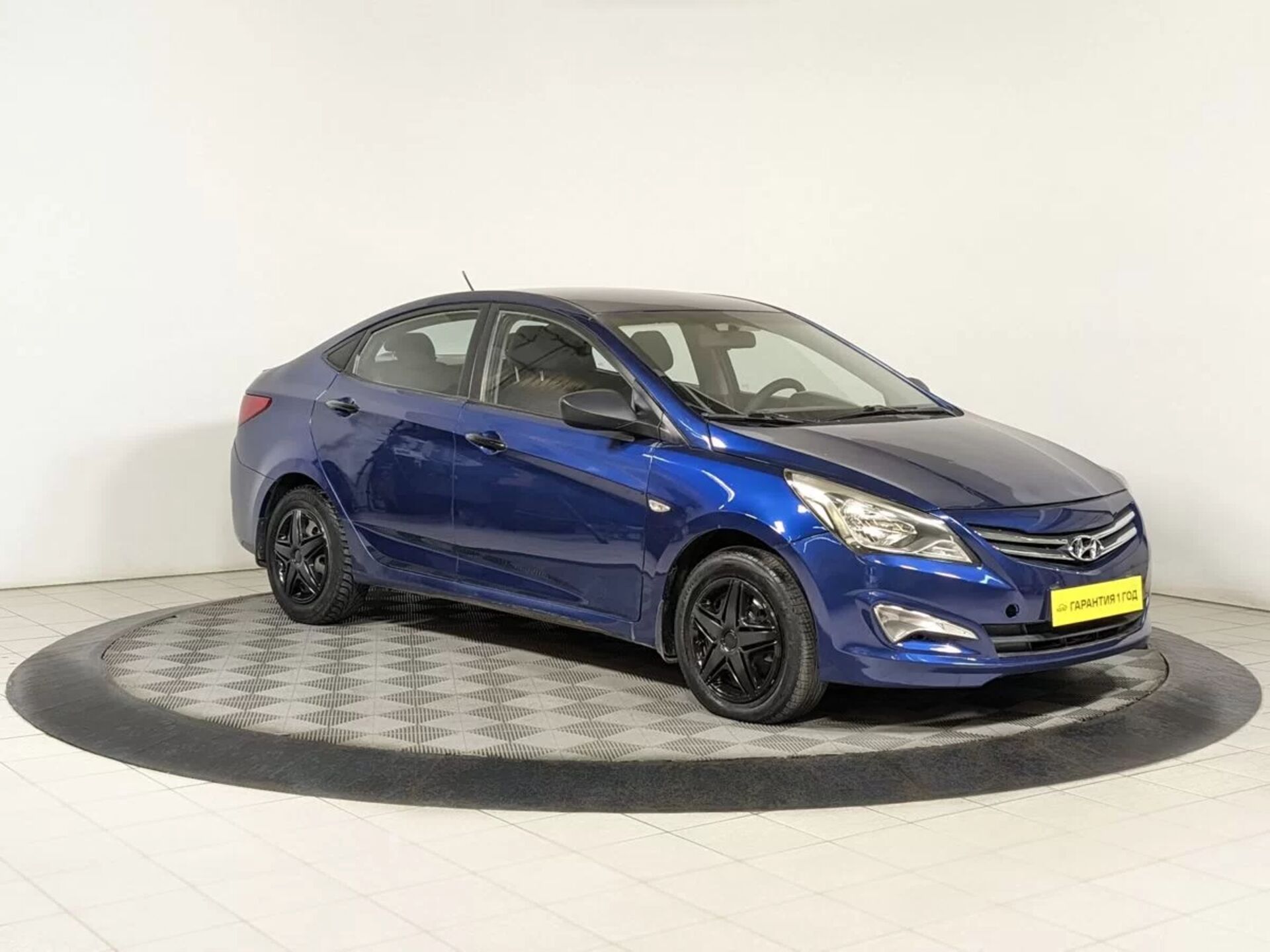 Автомобиль Hyundai Solaris с пробегом 174 000 км, седан 2015 года выпуска. Цвет кузова синий, коробка передач автомат, передний привод, левый руль. Двигатель 1.4 л. с мощностью 107 л.с.