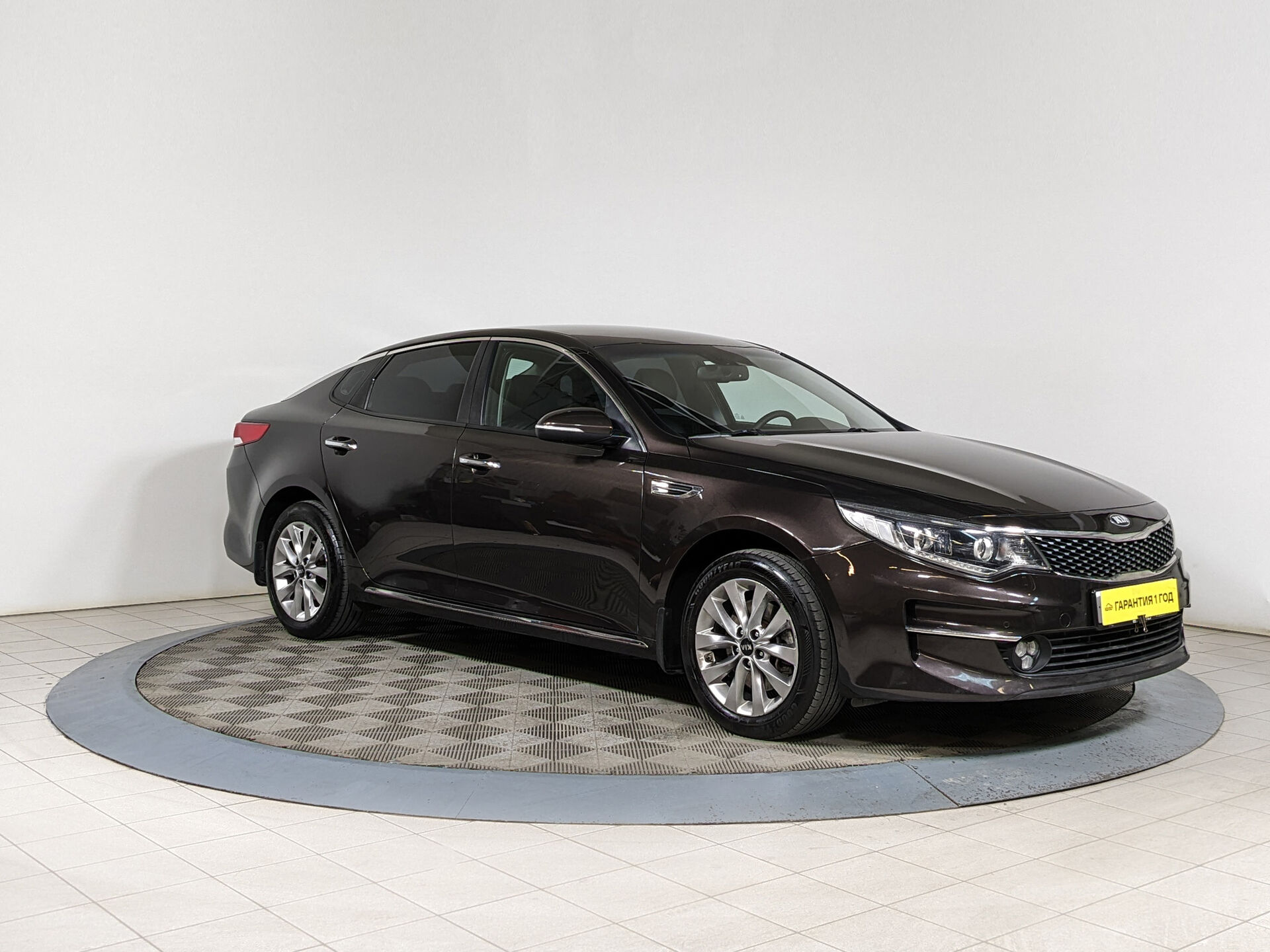 Автомобиль Kia Optima с пробегом 105 000 км, седан 2018 года выпуска. Цвет кузова коричневый, коробка передач автомат, передний привод, левый руль. Двигатель 2 л. с мощностью 150 л.с.
