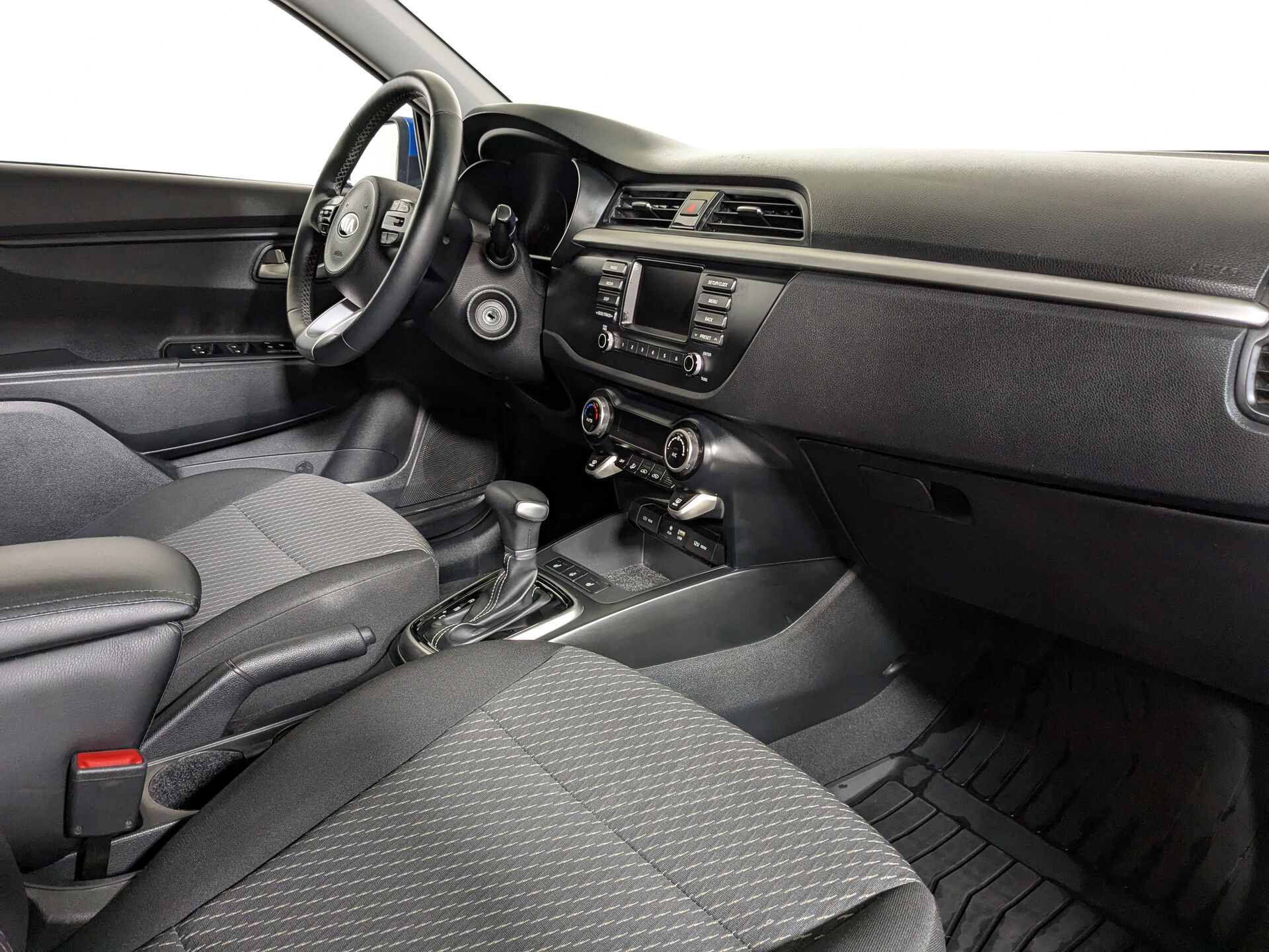 Kia Rio IV 2020 года — это практичный и надёжный седан с бензиновым двигателем объёмом 1,6 литра и мощностью 123 лошадиные силы, оснащённый автоматической коробкой передач. Синий кузов и эргономичный салон с тканевой отделкой создают лаконичный и функциональный образ, который подойдёт как для городских поездок, так и для путешествий за город.