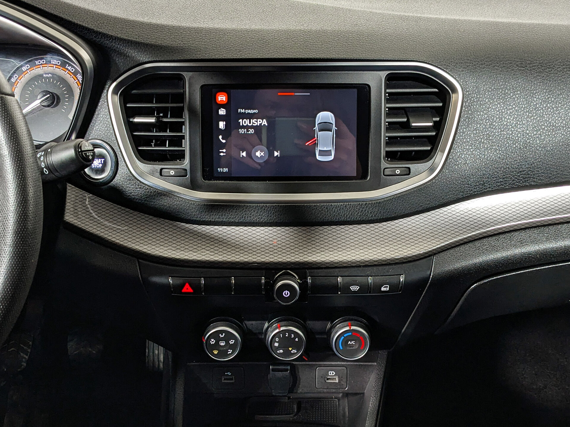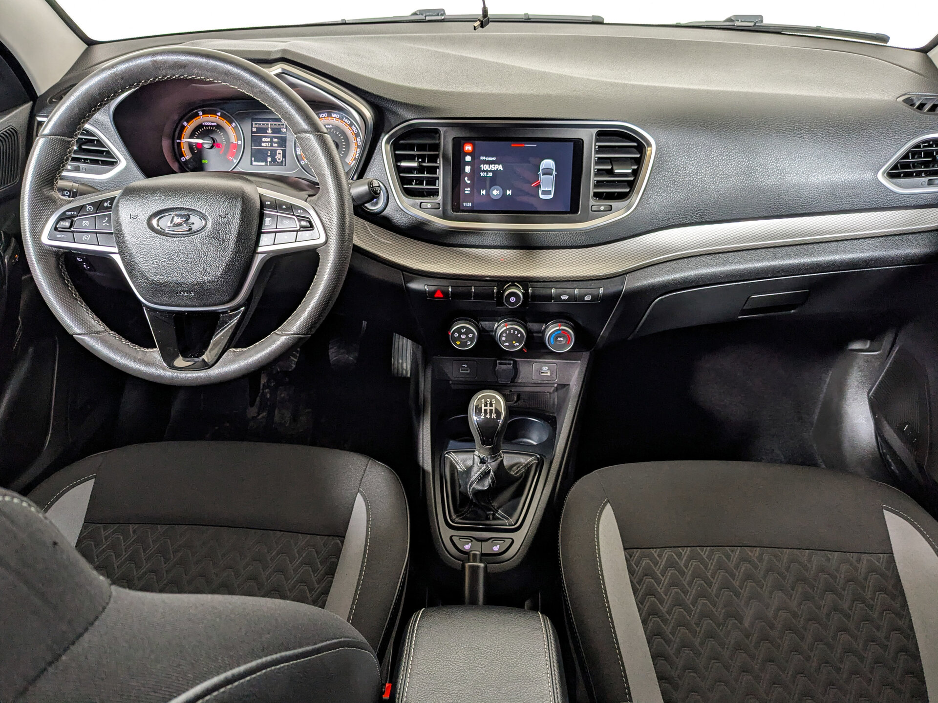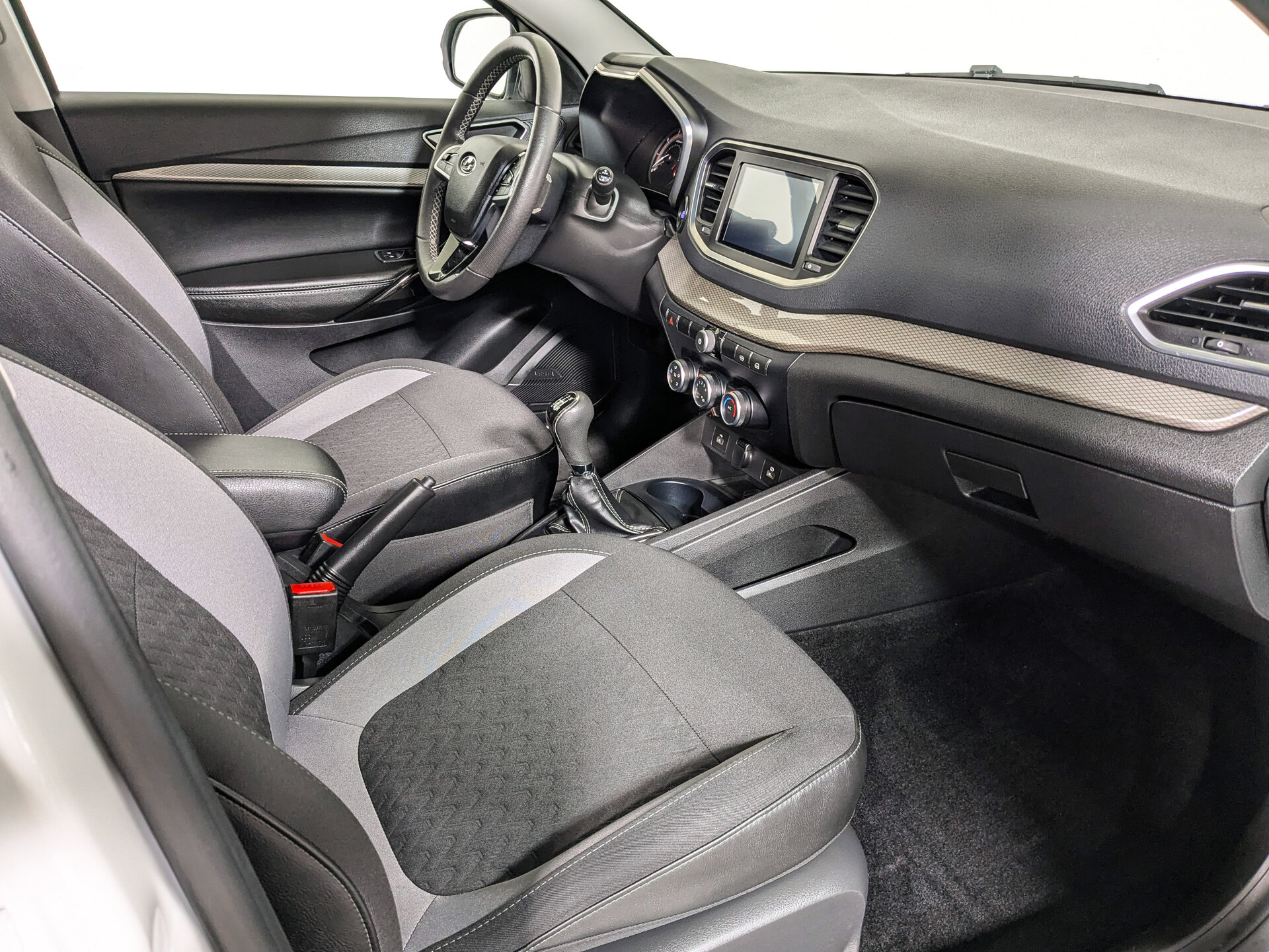 Автомобиль оснащён бензиновым двигателем объёмом 1,6 литра и мощностью 106 лошадиных сил, с механической коробкой передач. Салон - вместительный с тканевой отделкой и эргономичными сиденьями. Регулировка руля по высоте и вылету, а также регулировка сиденья водителя по высоте позволяют настроить оптимальное положение для вождения. Преимущества: мультифункциональное рулевое колесо и бортовой компьютер, кондиционер, подогрев передних сидений, электростеклоподъёмники, круиз-контроль и усилитель рулевого управления, Bluetooth, USB, розетка 12V, Яндекс.Авто, Android Auto и CarPlay, дистанционный запуск двигателя, обогрев лобового стекла, обогрев зеркал, электрорегулировка зеркал, парктроник задний и тонировка стёкол. Автомобиль в лизинге. Безопасность обеспечивают антиблокировочная система тормозов (ABS), система помощи при торможении, подушки безопасности водителя, пассажира и боковые подушки безопасности. ЭРА-ГЛОНАСС обеспечивает связь в случае аварии.