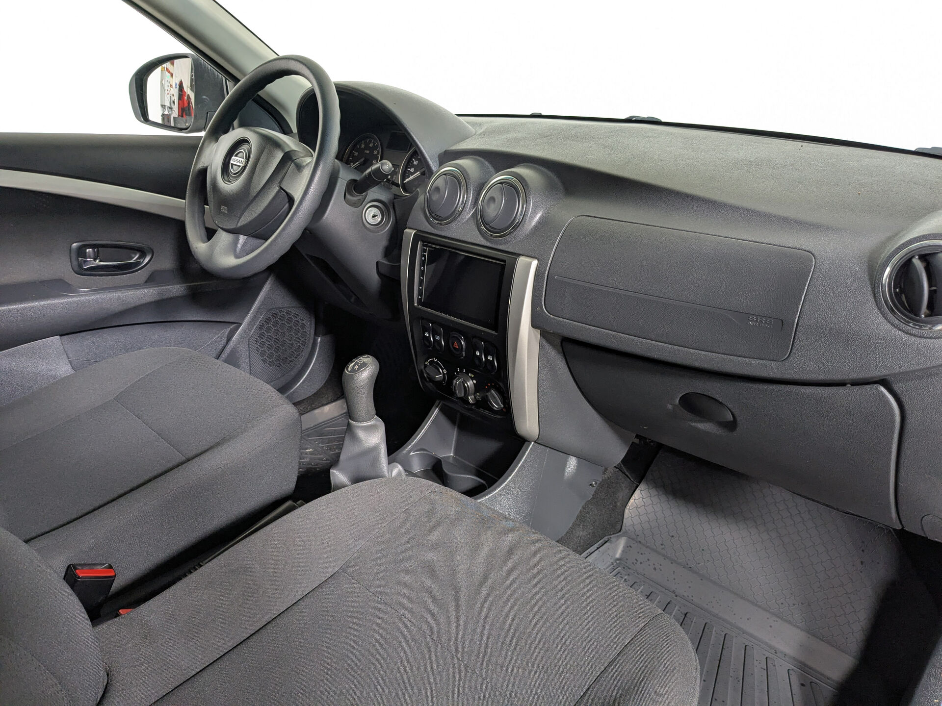 Салон автомобиля выполнен в тёмных тонах с тканевой обивкой — такое решение сочетает в себе практичность и комфорт. Среди удобств — регулировка руля по высоте, подогрев передних сидений и передние электростеклоподъёмники. Камера заднего вида и электрорегулировка зеркал облегчают манёвры и парковку, а тонированные стёкла добавляют приватности.