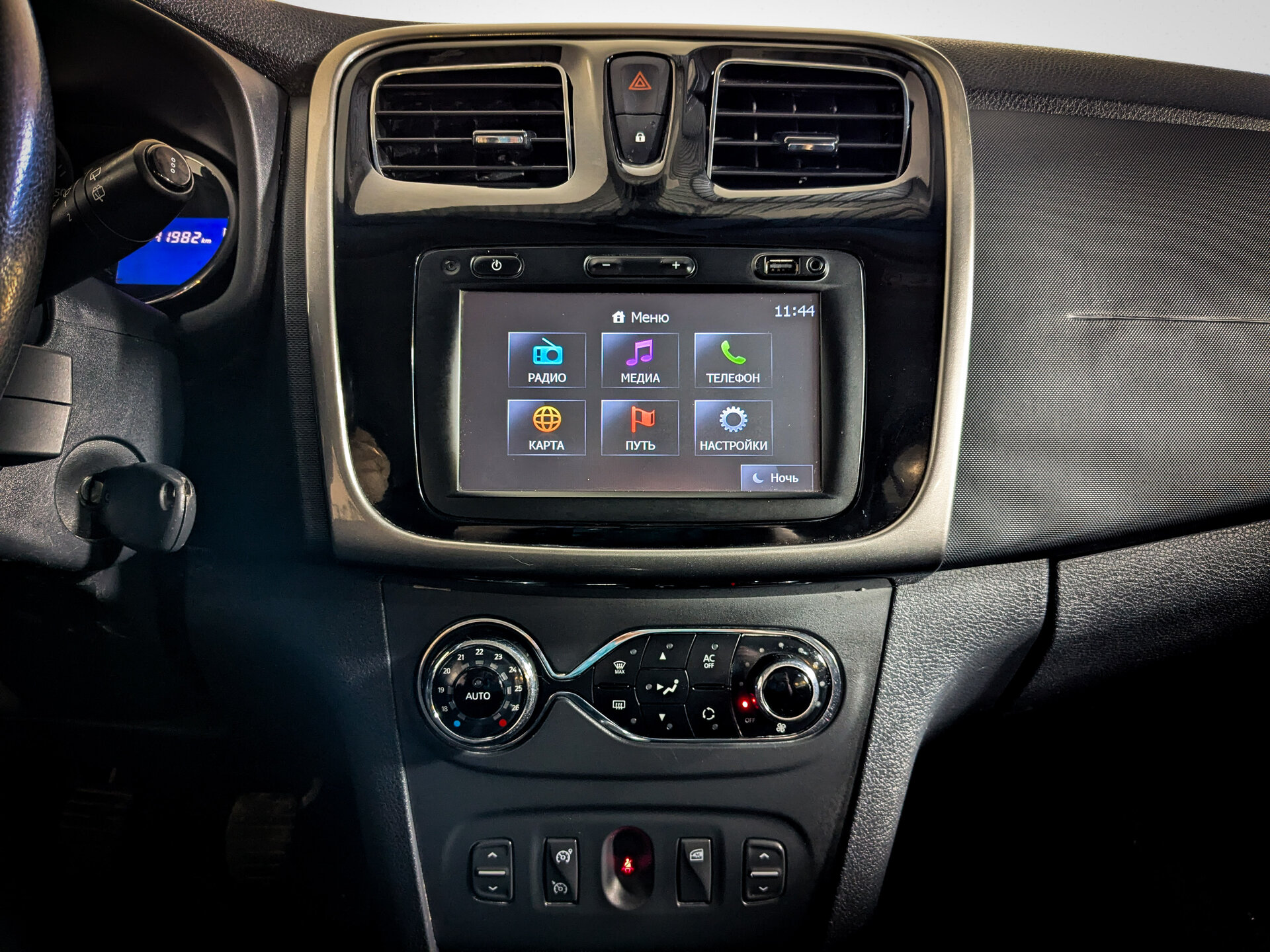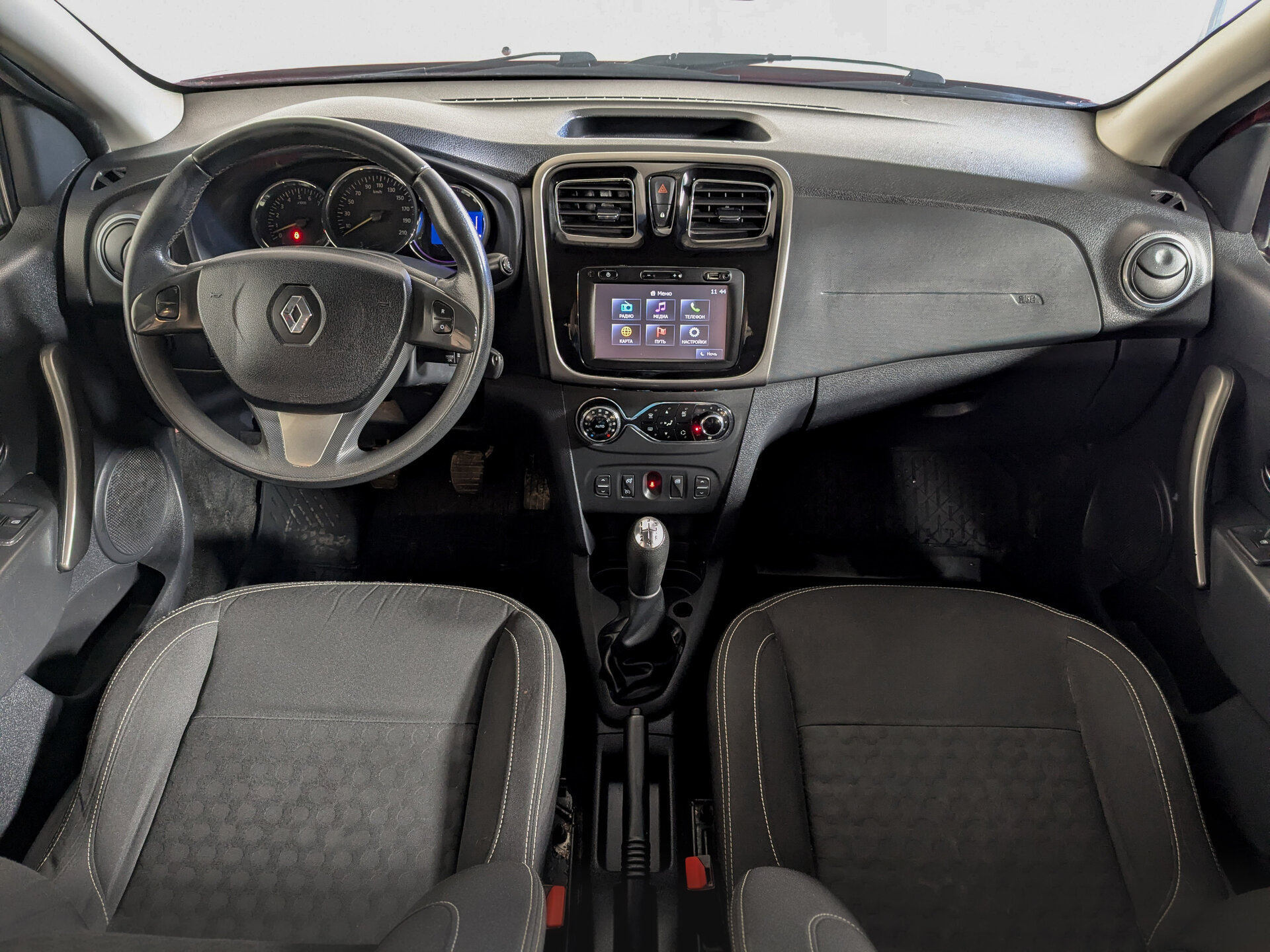 Функциональные возможности Sandero включают в себя бортовой компьютер, аудиосистему с поддержкой TV/Видео, AUX, Bluetooth и USB, однозонный климат-контроль, подогрев передних сидений, мультифункциональное рулевое колесо, усилитель рулевого управления и круиз-контроль. Есть несколько окрашенных элементов. Безопасность вождения обеспечивают антиблокировочная система тормозов (ABS), антипробуксовочная система (ASR / TCS / TRC) и система курсовой стабилизации (ESP / ESC / DSC / VSA), подушки безопасности для водителя и пассажира. Полноразмерное запасное колесо в комплекте.