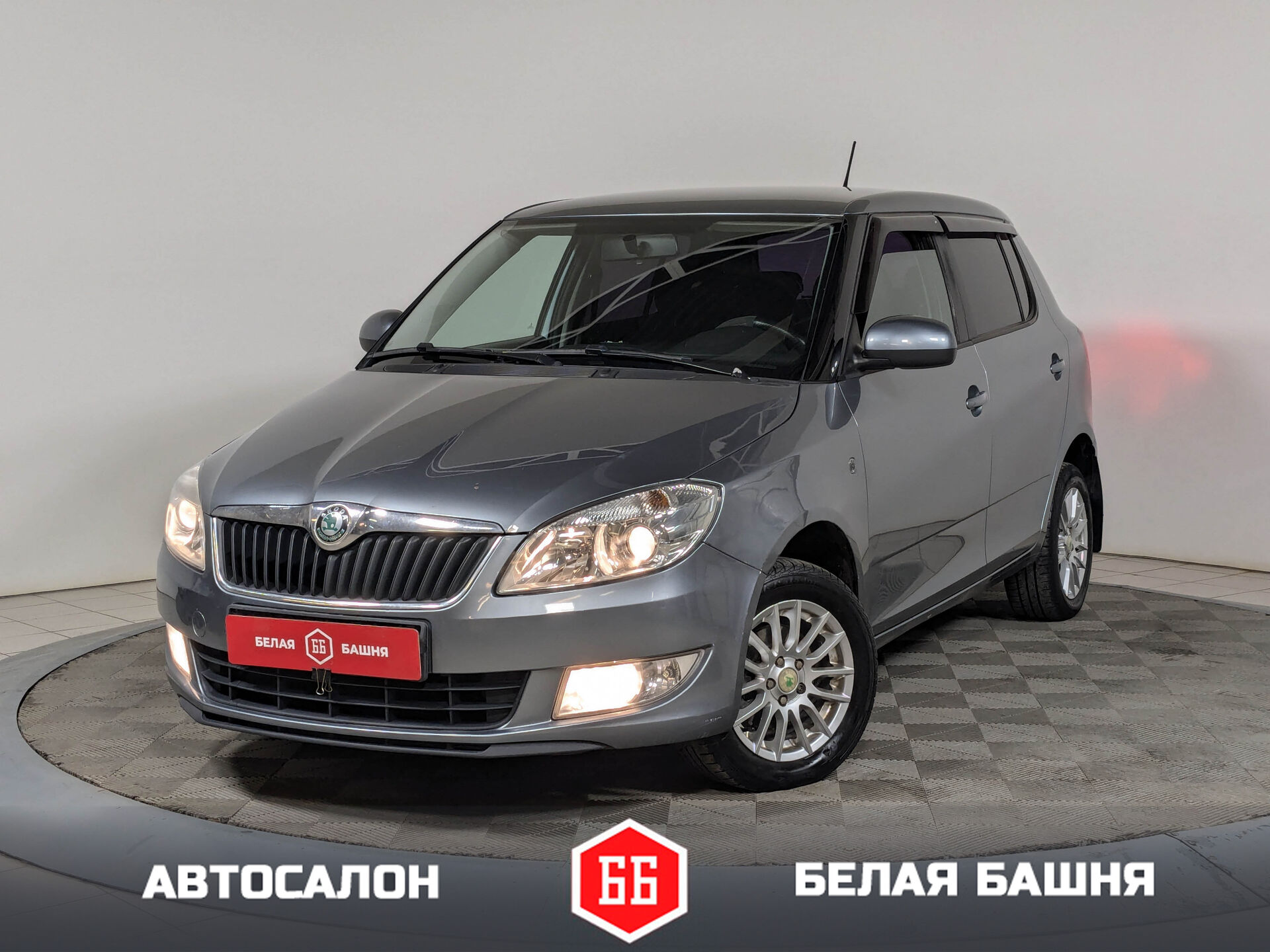 Автомобиль Skoda Fabia с пробегом 120 000 км, хетчбэк 2012 года выпуска. Цвет кузова серый, коробка передач автомат, передний привод, левый руль. Двигатель 1.6 л. с мощностью 105 л.с.