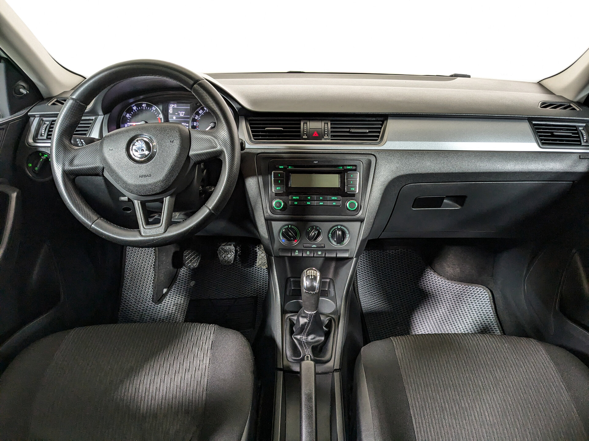 В салоне — тёмная тканевая обивка, которая легко чистится и сохраняет привлекательный вид. Регулировка руля по высоте и вылету позволяет настроить управление под себя, а передние электростеклоподъёмники добавляют комфорта в повседневную эксплуатацию.