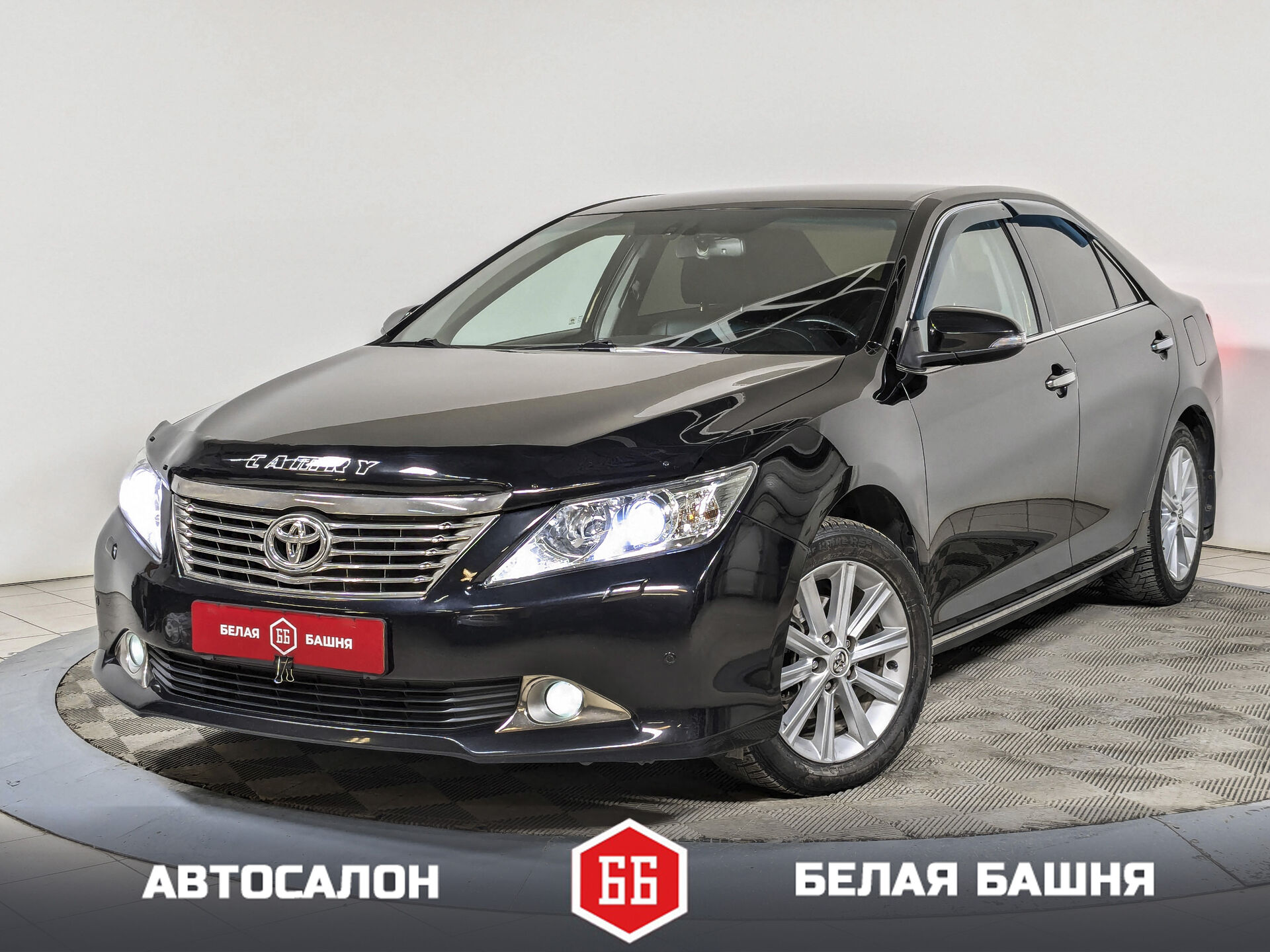 Автомобиль Toyota Camry с пробегом 190 000 км, седан 2012 года выпуска. Цвет кузова черный, коробка передач автомат, передний привод, левый руль. Двигатель 3.5 л. с мощностью 249 л.с.