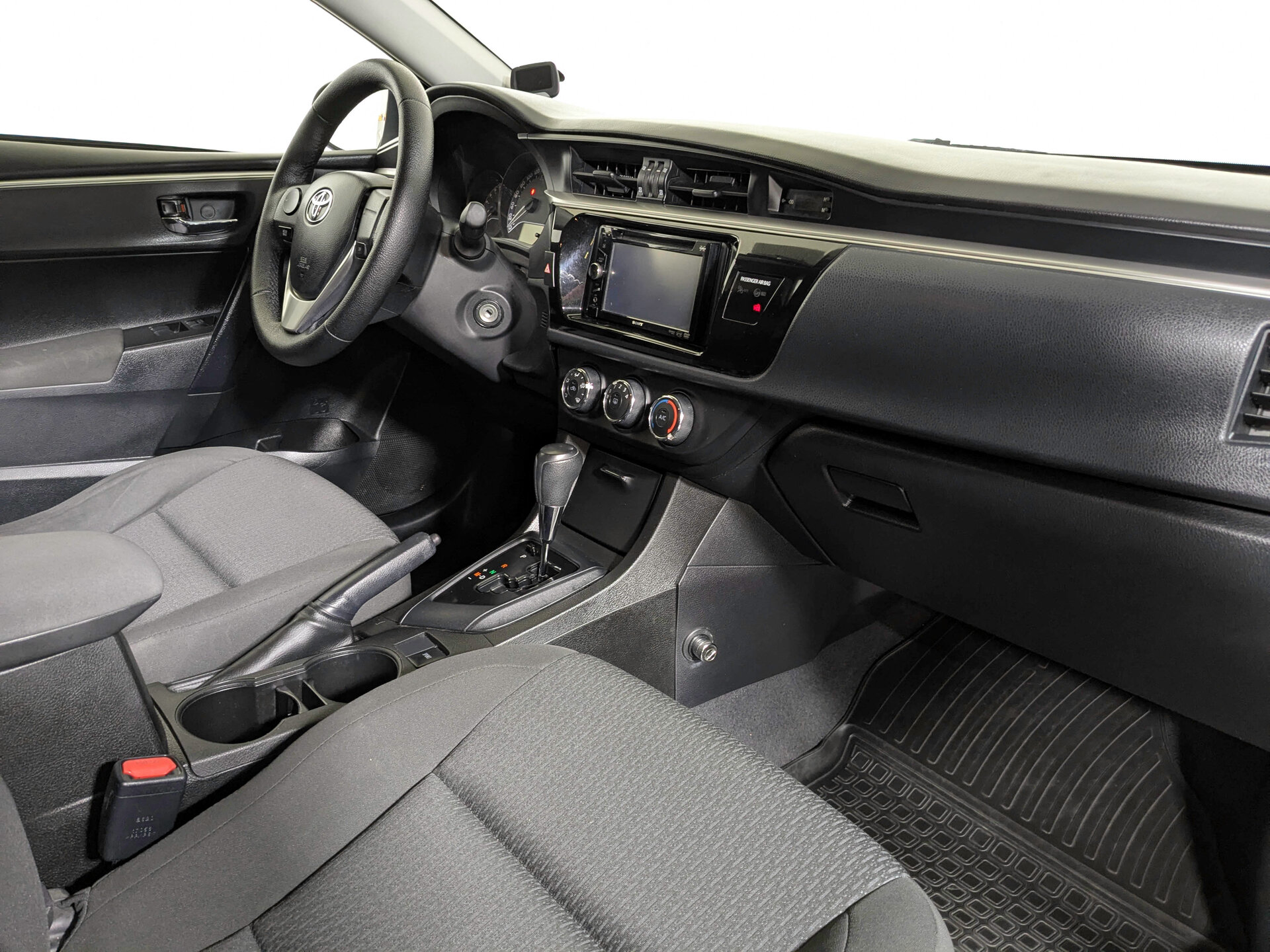 Toyota Corolla XI поколения (E160, E170, E180) 2013 года — практичный седан, который подойдёт как для городских поездок, так и для путешествий. Белый цвет кузова придаёт автомобилю лаконичный вид, а проверенная временем конструкция обеспечивает надёжность в эксплуатации.