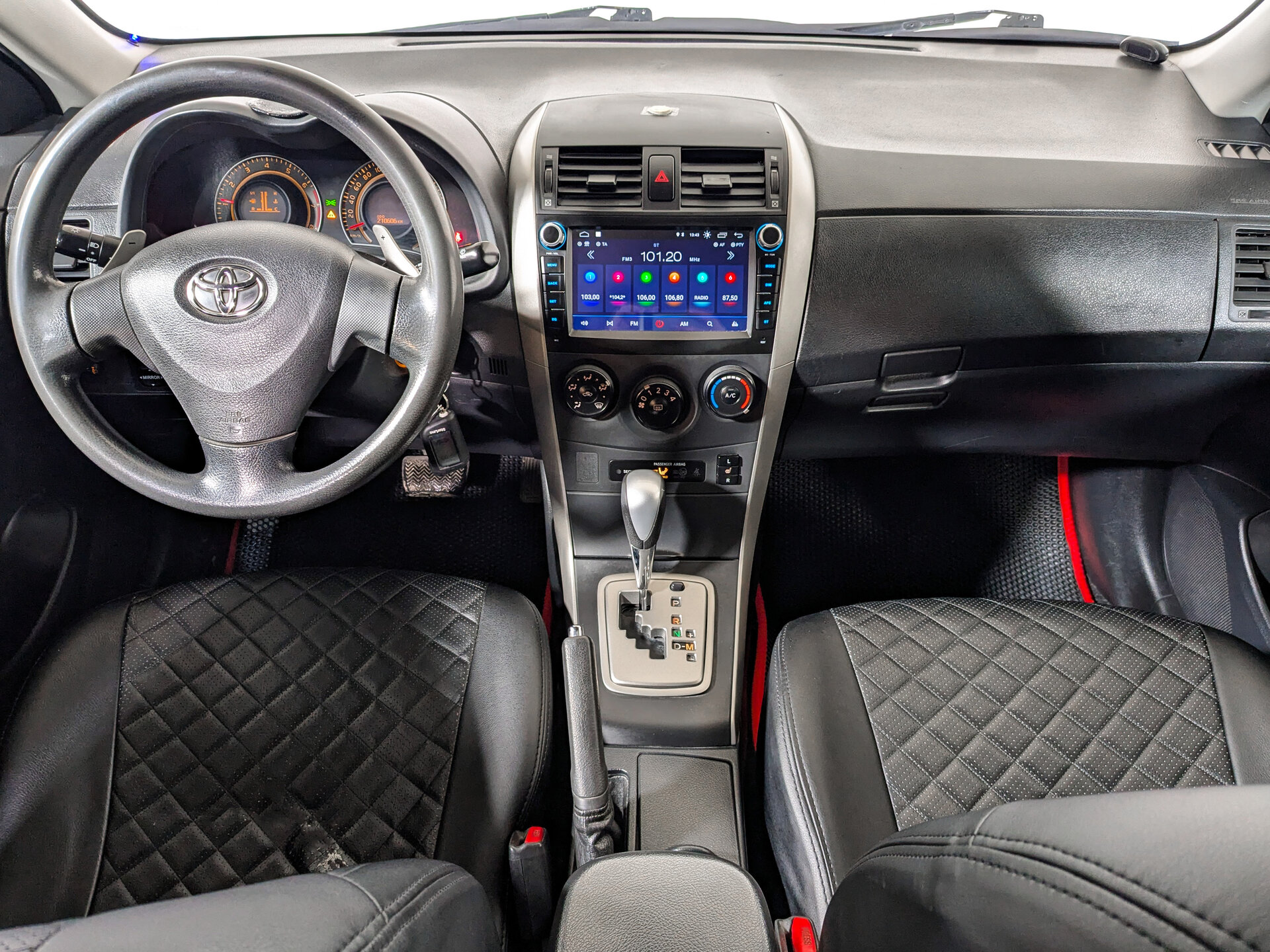 Toyota Corolla — это седан с АКПП и бензиновым двигателем объёмом 1,6 литра (124 л.с.). Пробег автомобиля составляет 210 000 километров, что свидетельствует о его надёжности и долговечности. В автомобиле предусмотрены системы, которые делают его удобным для повседневного использования: кондиционер, аудиосистема, бортовой компьютер. Для удобства водителя и пассажира предусмотрены подогрев передних сидений, передние электростеклоподъёмники, регулировка руля по высоте и усилитель рулевого управления, дистанционный запуск двигателя, парктроник задний, электрорегулировка зеркал, защита картера, центральный замок, иммобилайзер и сигнализация. Безопасность движения обеспечивают антиблокировочная система тормозов (ABS), антипробуксовочная система (ASR / TCS / TRC) и система курсовой стабилизации (ESP / ESC / DSC / VSA). Автомобиль также оснащён подушками безопасности для водителя и пассажира.