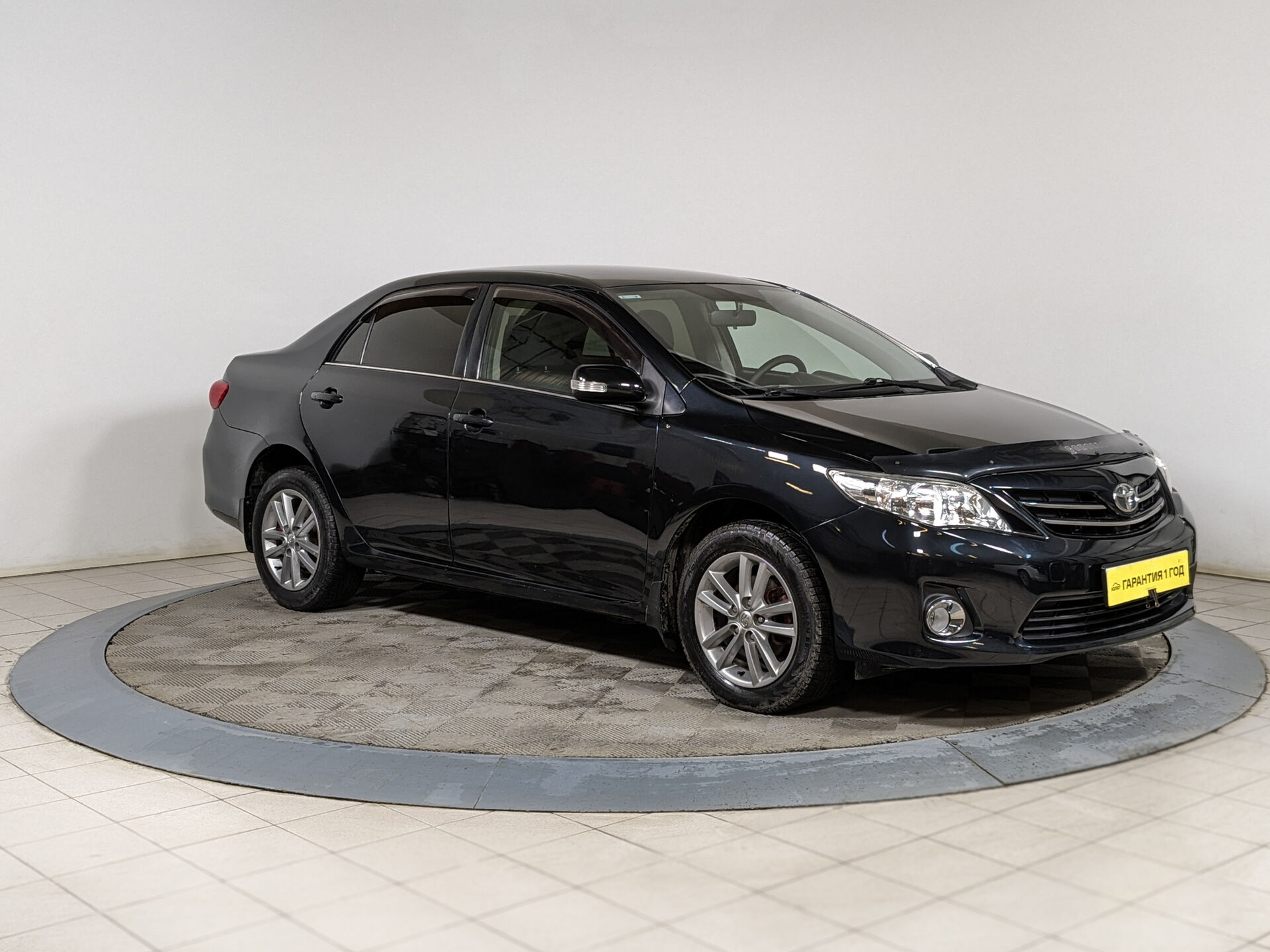 Автомобиль Toyota Corolla с пробегом 195 000 км, седан 2011 года выпуска. Цвет кузова черный, коробка передач автомат, передний привод, левый руль. Двигатель 1.6 л. с мощностью 124 л.с.
