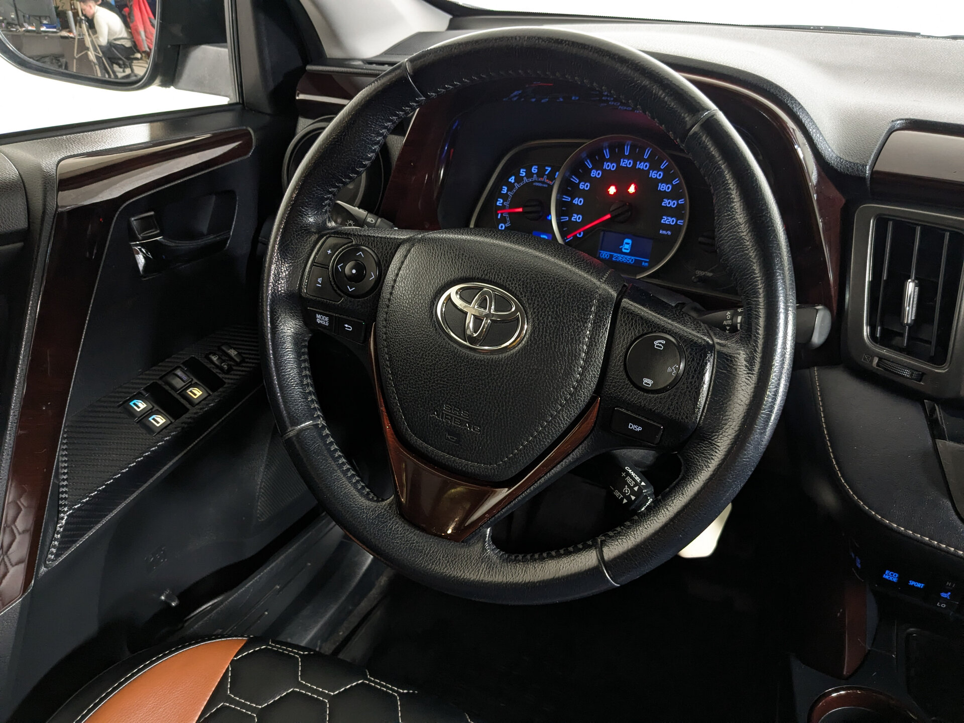 - Отделка кожей рулевого колеса