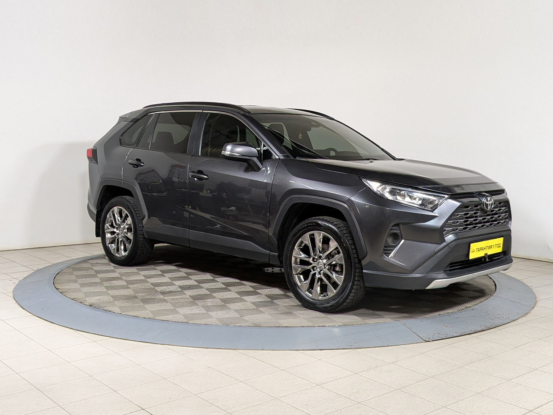 Автомобиль Toyota RAV4 с пробегом 66 000 км, внедорожник 2019 года выпуска. Цвет кузова серый, коробка передач автомат, полный привод, левый руль. Двигатель 2.5 л. с мощностью 199 л.с.
