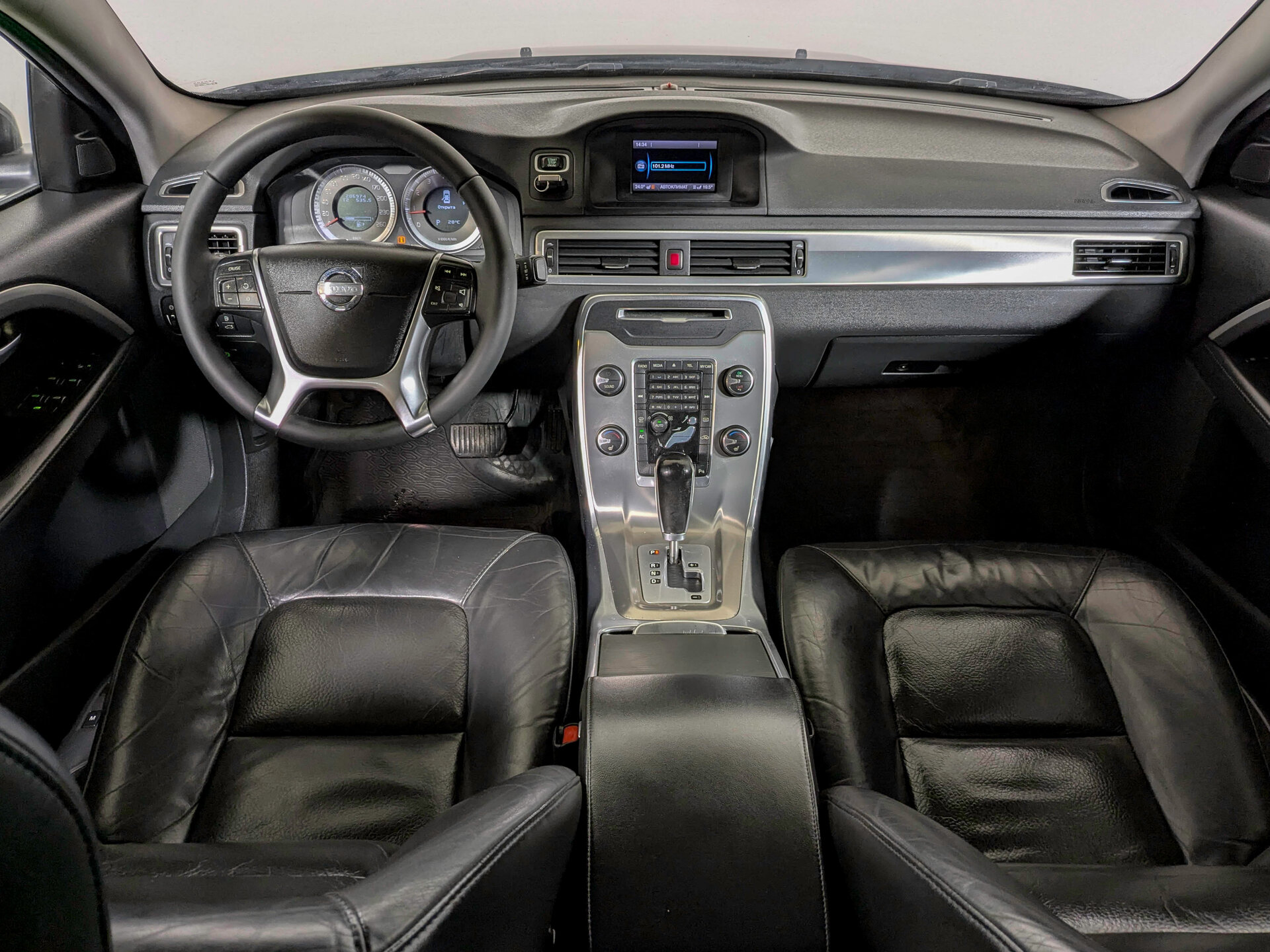 Volvo S80 II Рестайлинг 2012 года — это седан, который сочетает в себе надёжность и функциональность. Чёрный кузов придаёт автомобилю сдержанный и лаконичный вид, а проверенная временем конструкция делает его отличным выбором для повседневных поездок.