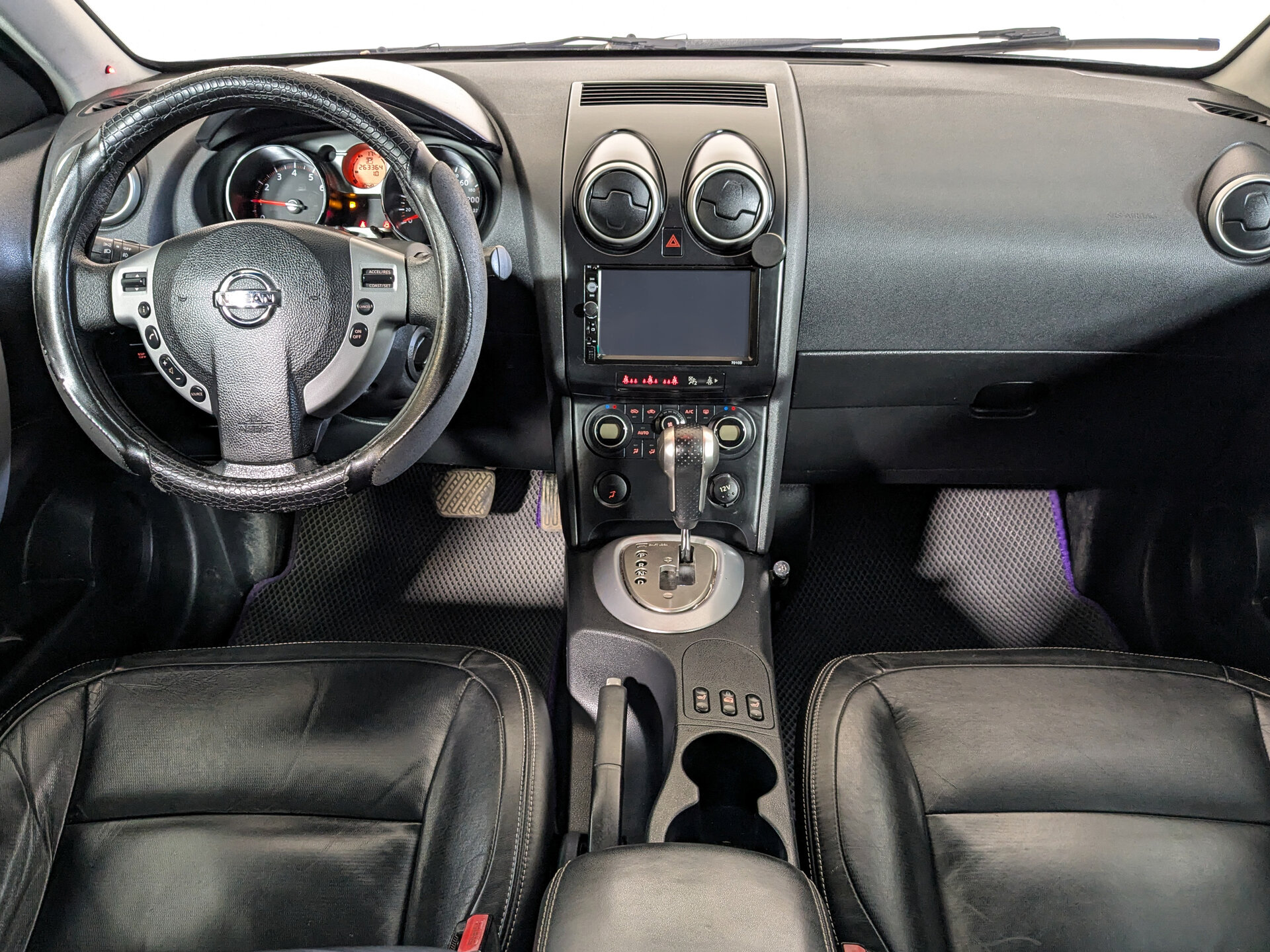 Автомобиль Nissan Qashqai с пробегом 260 000 км, внедорожник 2008 года выпуска. Цвет кузова черный, коробка передач вариатор, передний привод, левый руль. Двигатель 2.0 л. с мощностью 141 л.с.