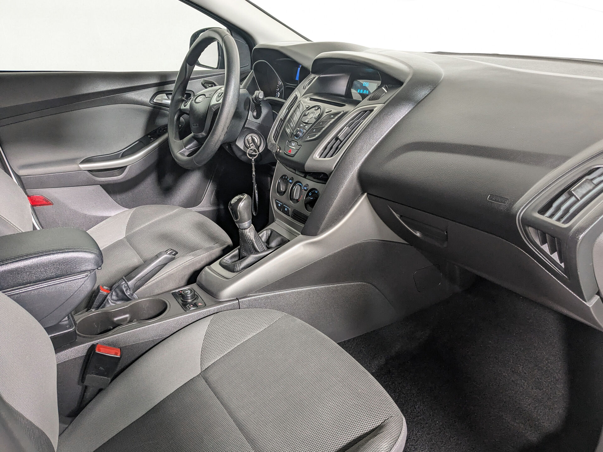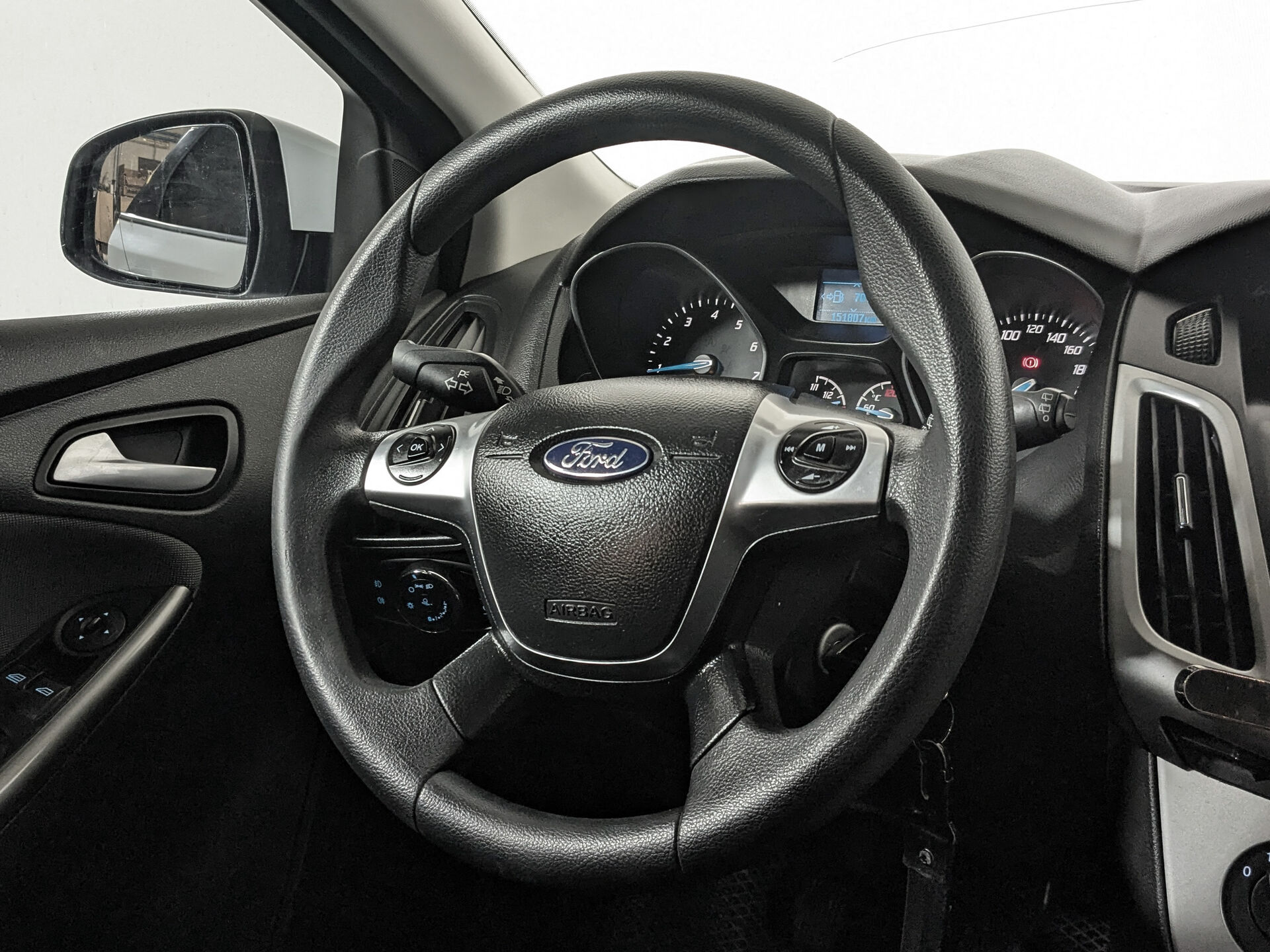 Автомобиль Ford Focus с пробегом 150 000 км, хэтчбек 5 дв. 2015 года выпуска. Цвет кузова белый, коробка передач механика, передний привод, левый руль. Двигатель 1.6 л. с мощностью 105 л.с.