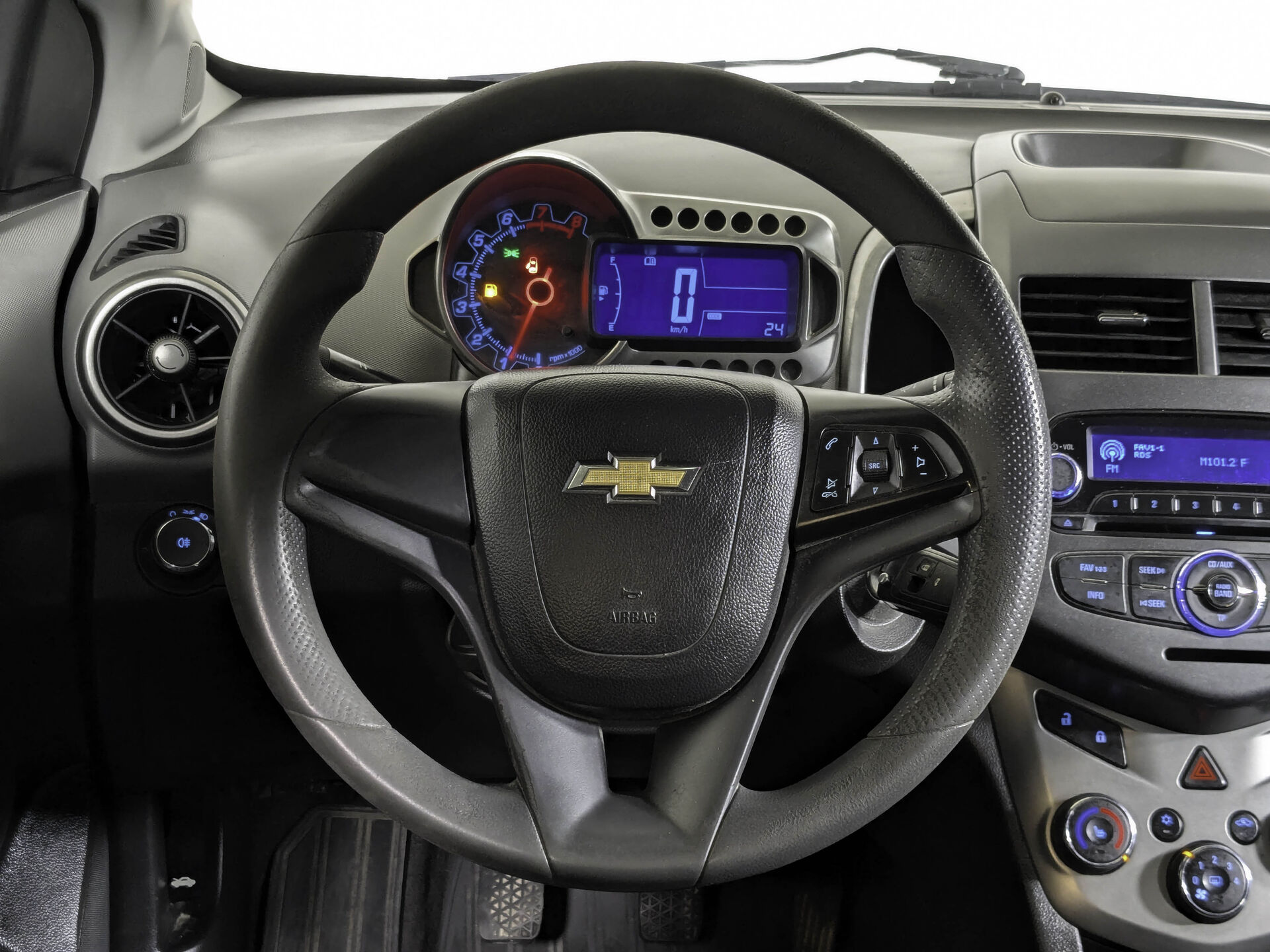 Автомобиль Chevrolet Aveo с пробегом 230 000 км, седан 2013 года выпуска. Цвет кузова белый, коробка передач механика, передний привод, левый руль. Двигатель 1.6 л. с мощностью 115 л.с.