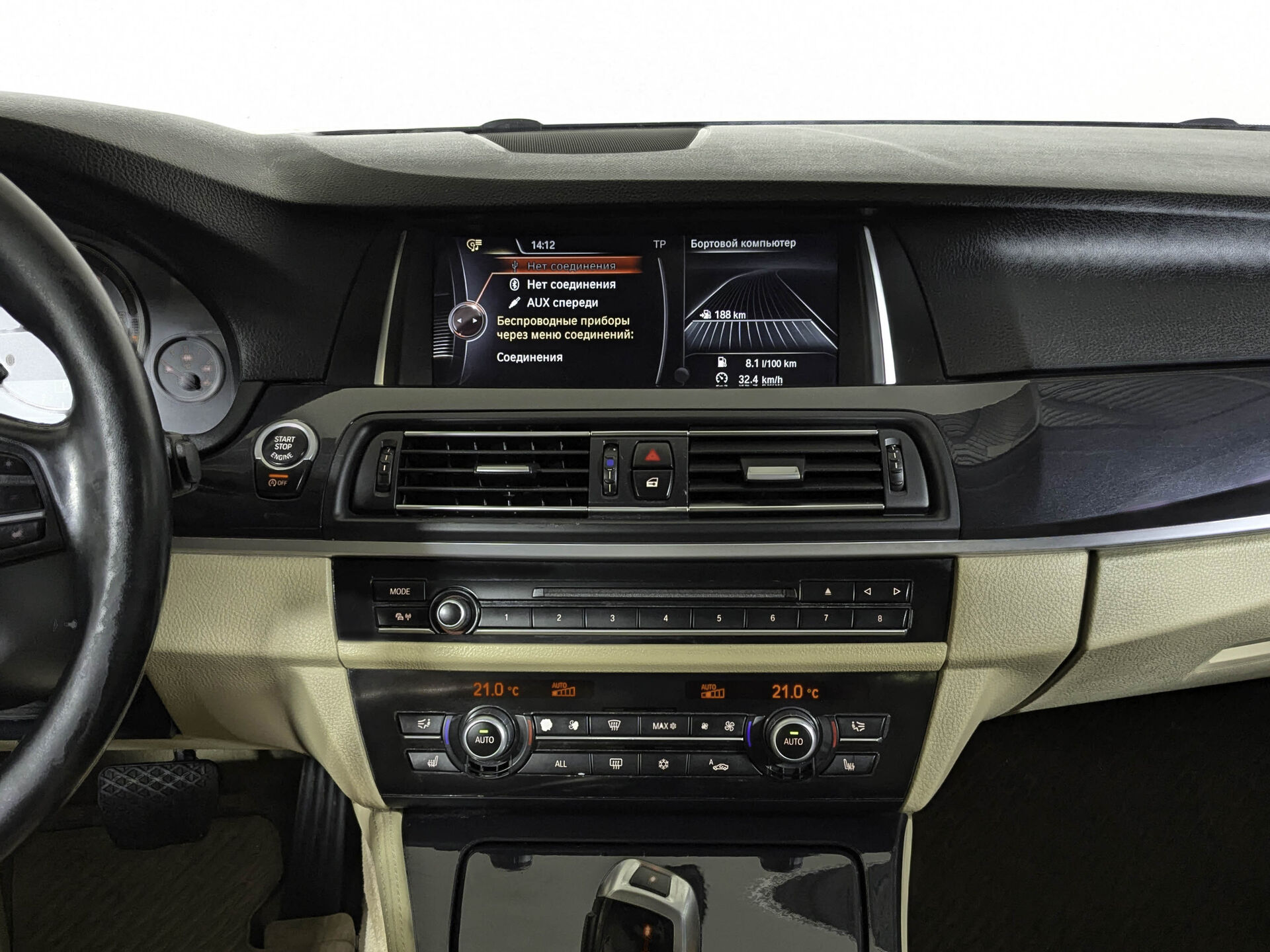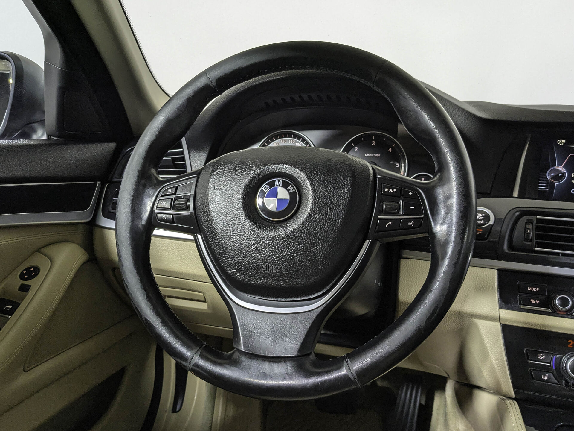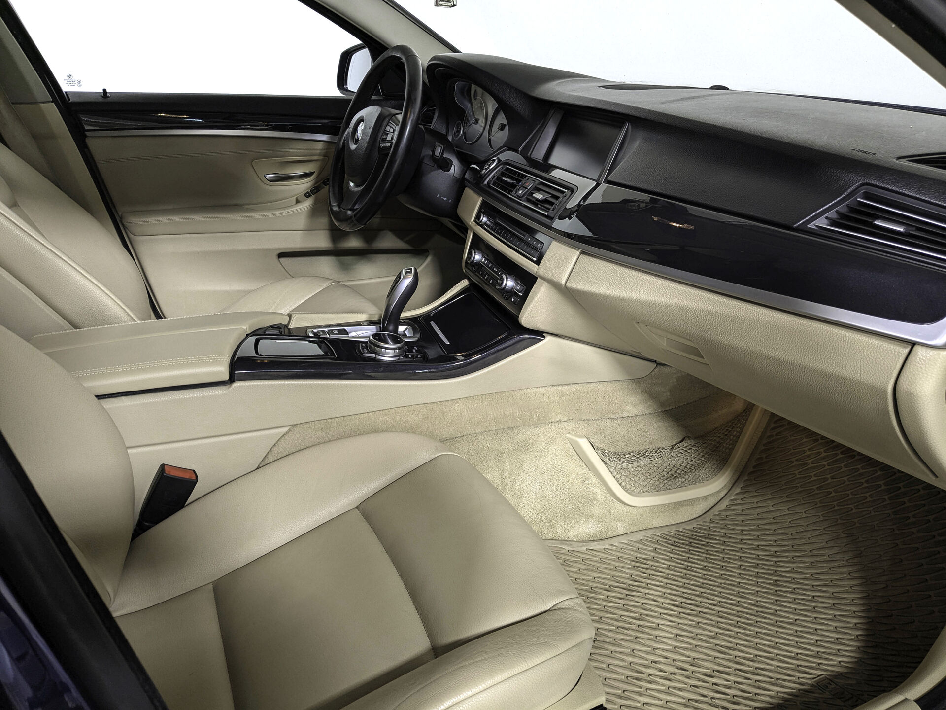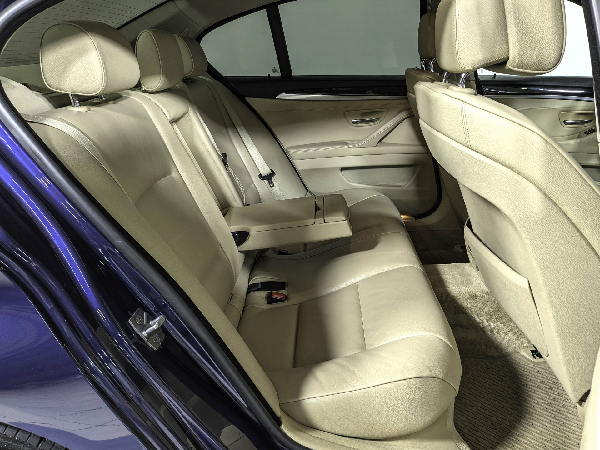 Автомобиль BMW 5 series с пробегом 217 000 км, седан 2012 года выпуска. Цвет кузова синий, коробка передач автомат, полный привод, левый руль. Двигатель 2.0 л. с мощностью 218 л.с.