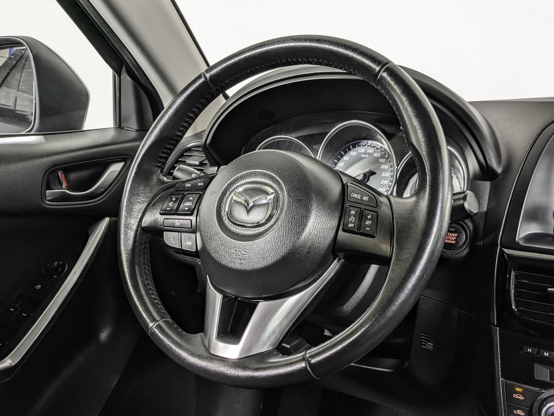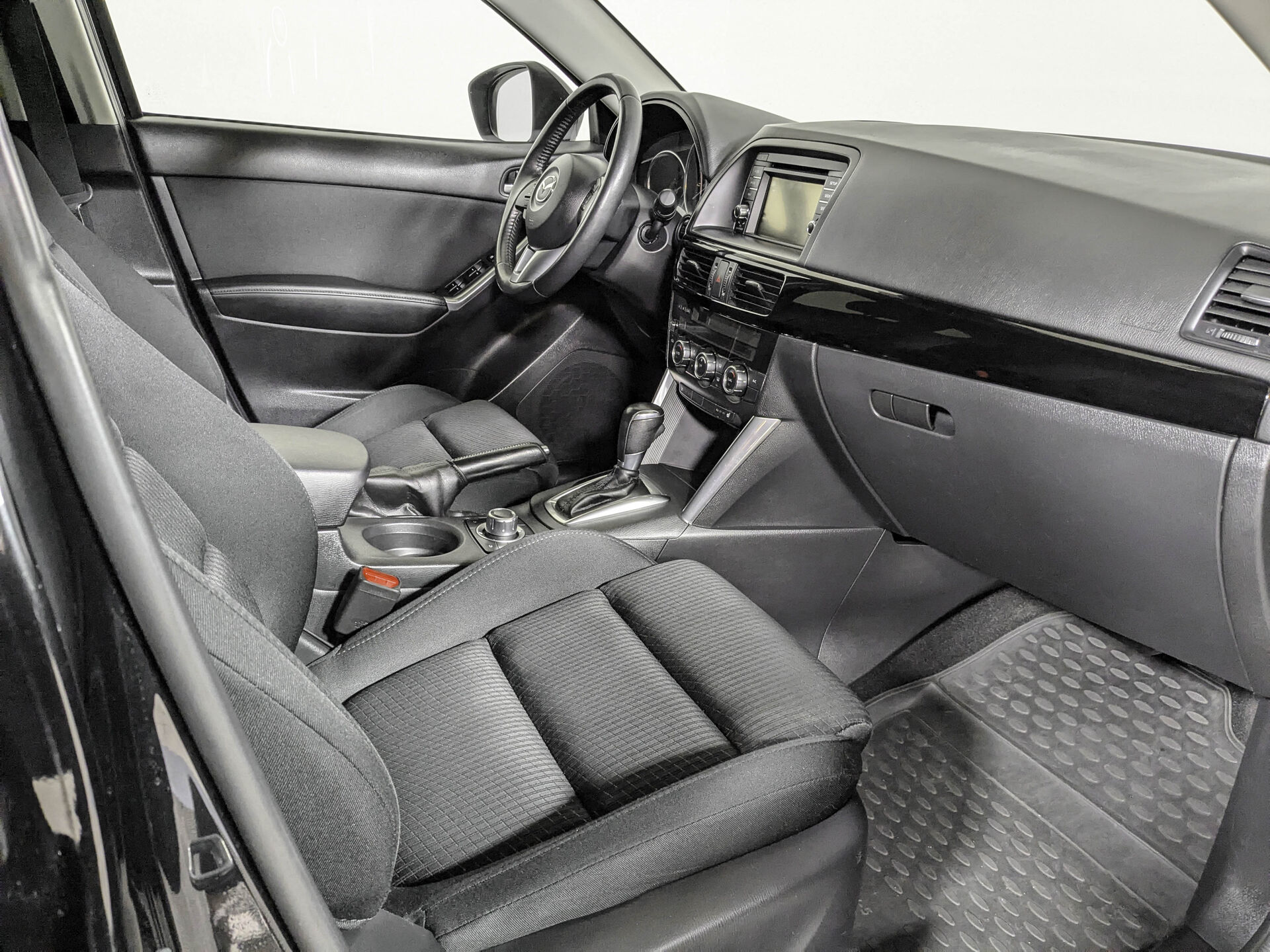 Автомобиль Mazda CX-5 с пробегом 165 025 км, внедорожник 2014 года выпуска. Цвет кузова черный, коробка передач автомат, передний привод, левый руль. Двигатель 2.0 л. с мощностью 150 л.с.