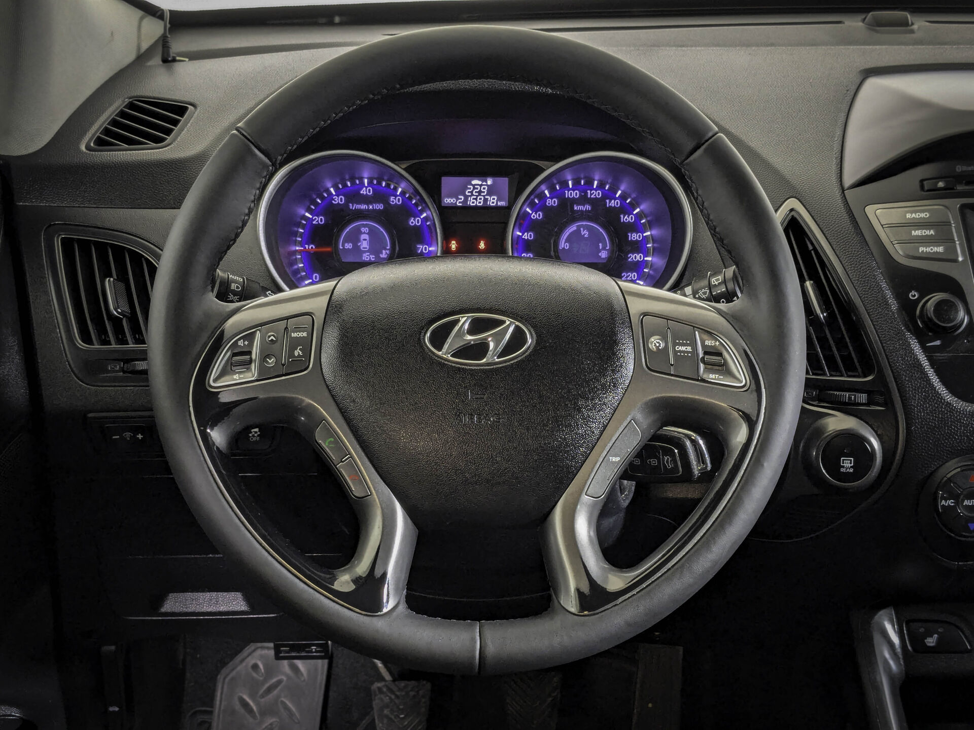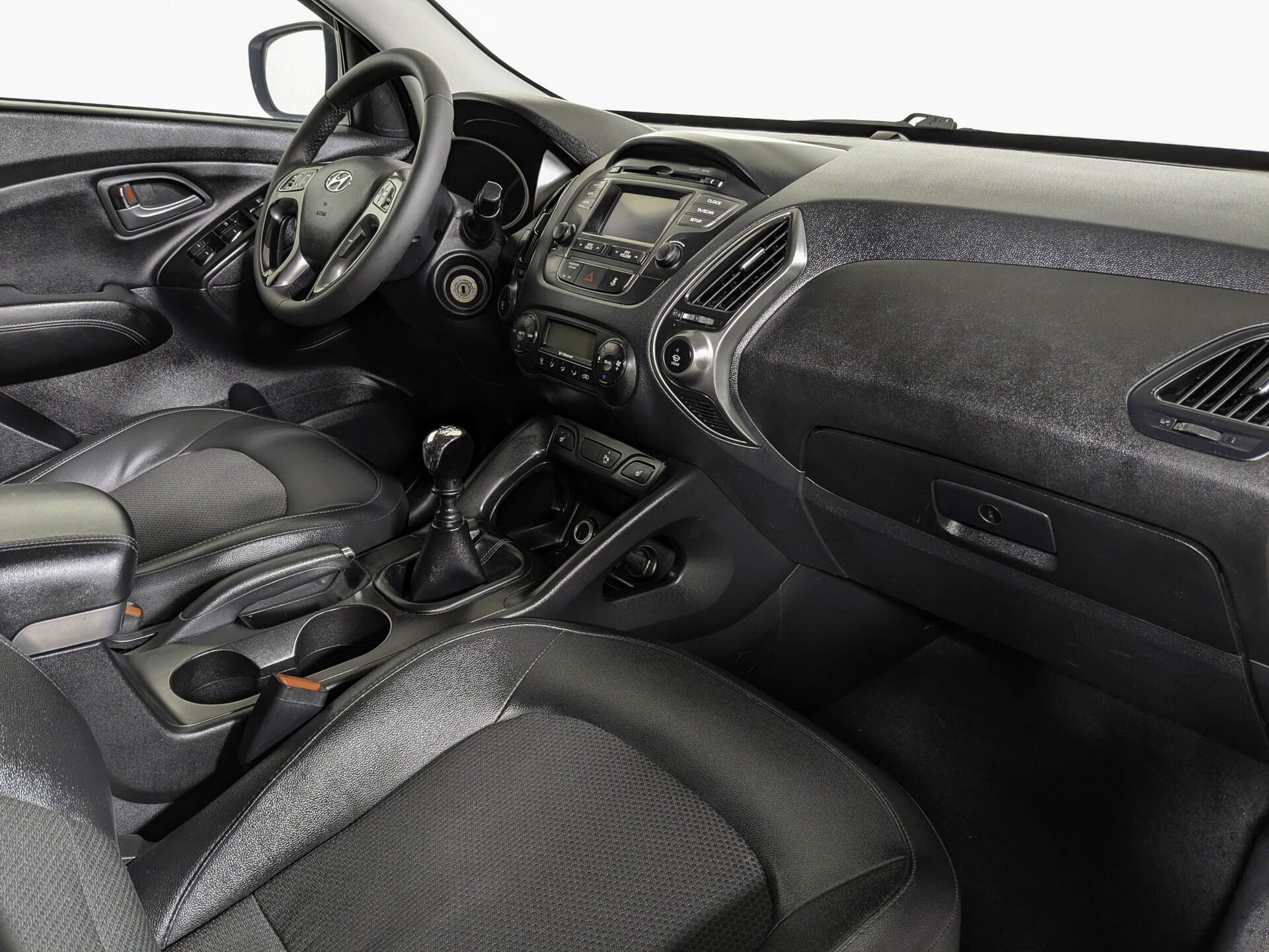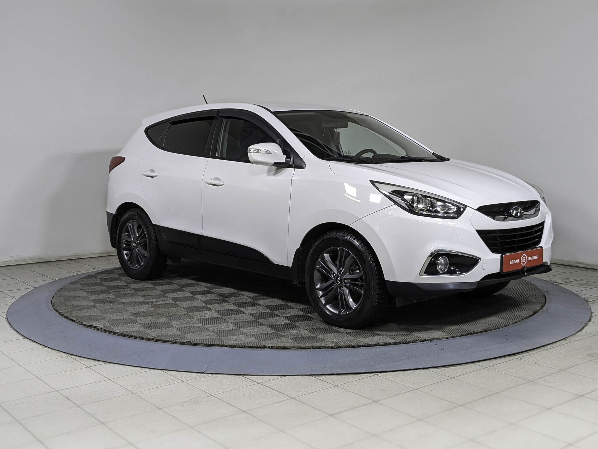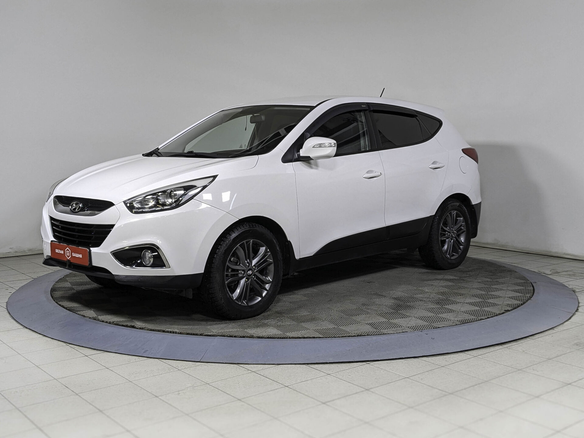 Автомобиль Hyundai ix35 с пробегом 200 000 км, внедорожник 2014 года выпуска. Цвет кузова белый, коробка передач механика, передний привод, левый руль. Двигатель 2.0 л. с мощностью 150 л.с.