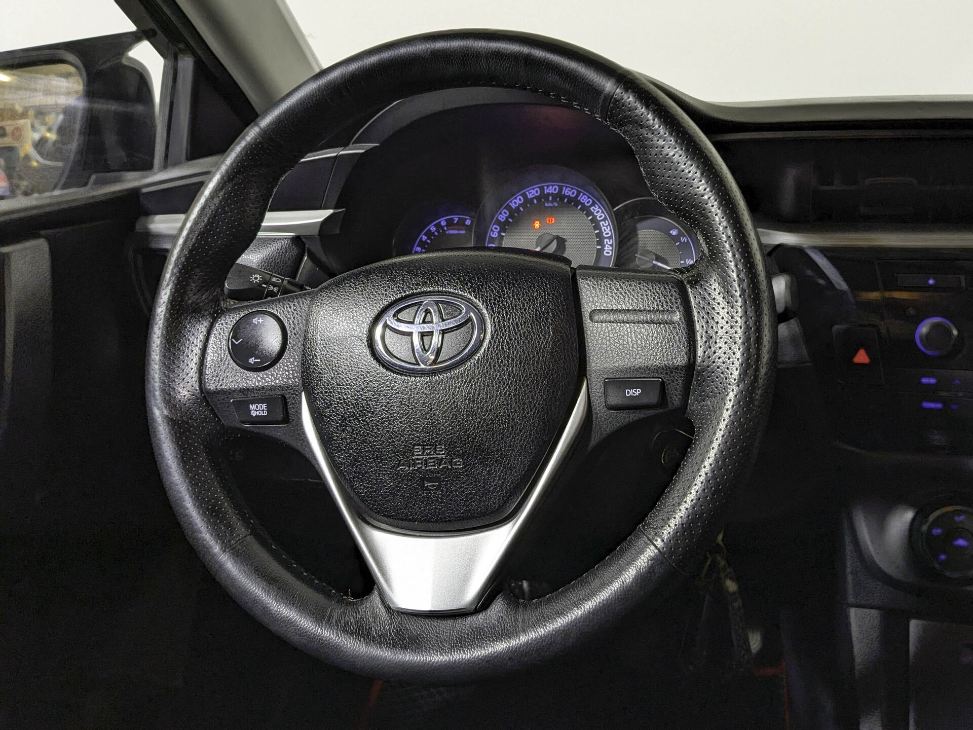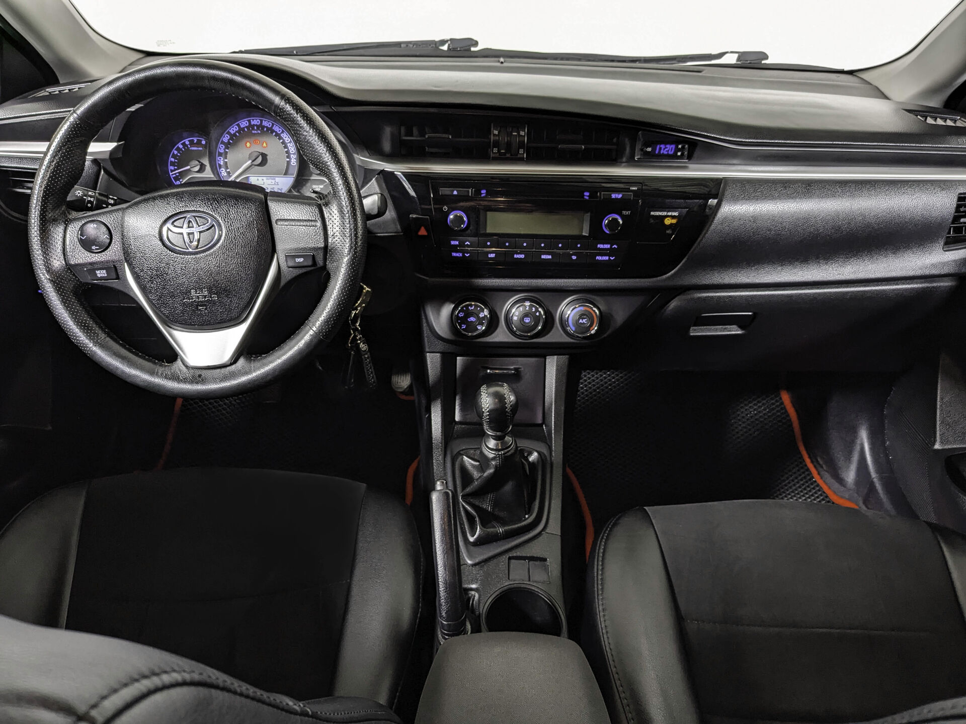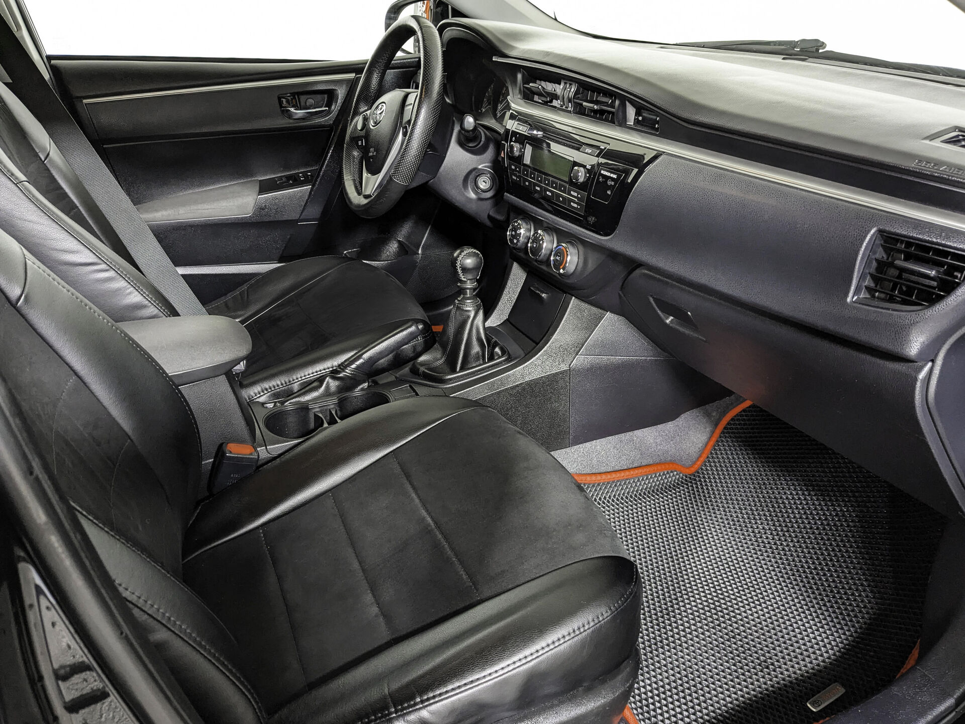 Автомобиль Toyota Corolla с пробегом 220 000 км, седан 2013 года выпуска. Цвет кузова черный, коробка передач механика, передний привод, левый руль. Двигатель 1.6 л. с мощностью 122 л.с.