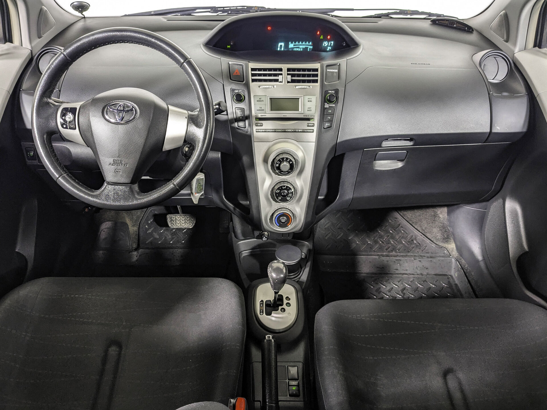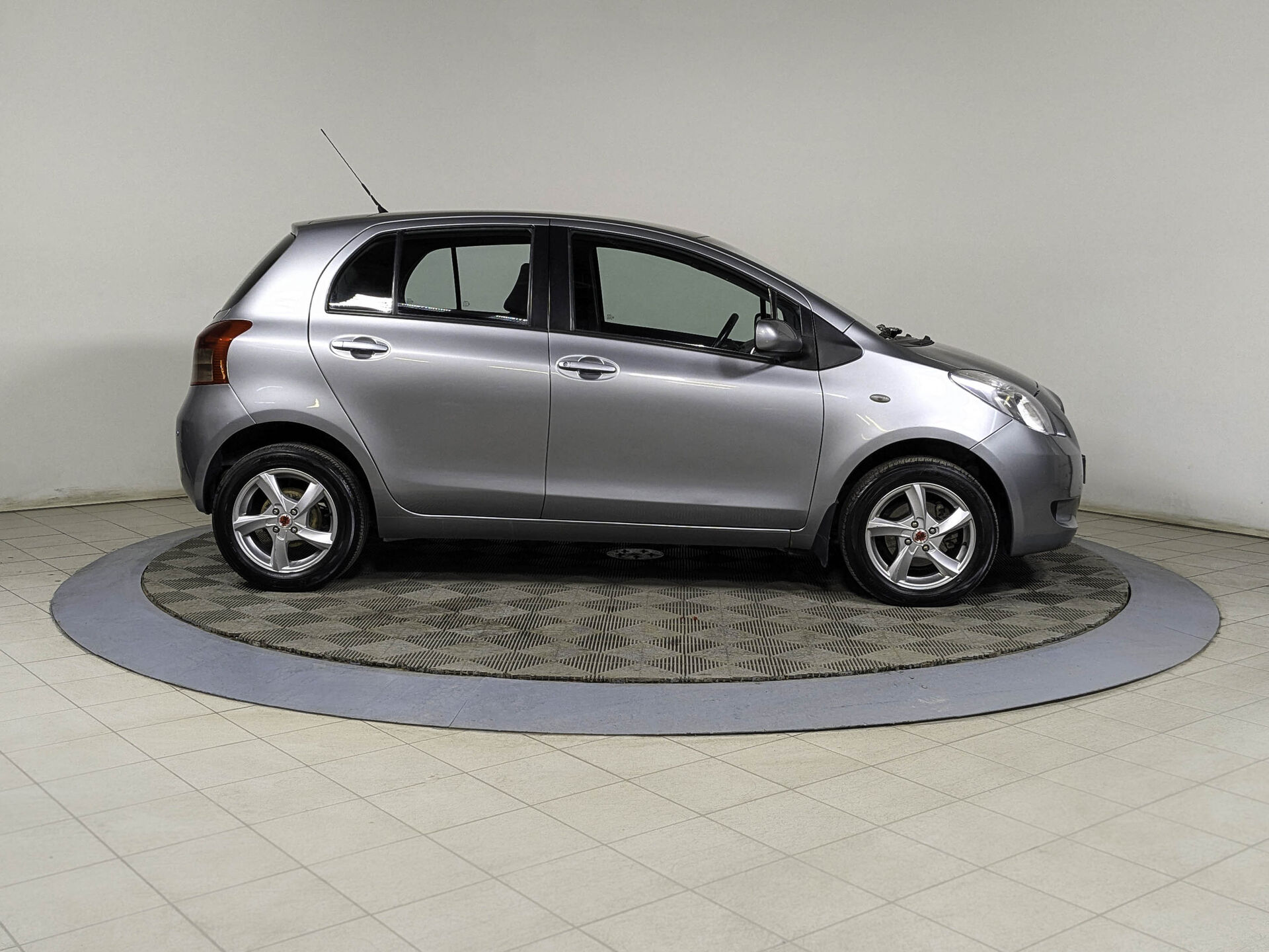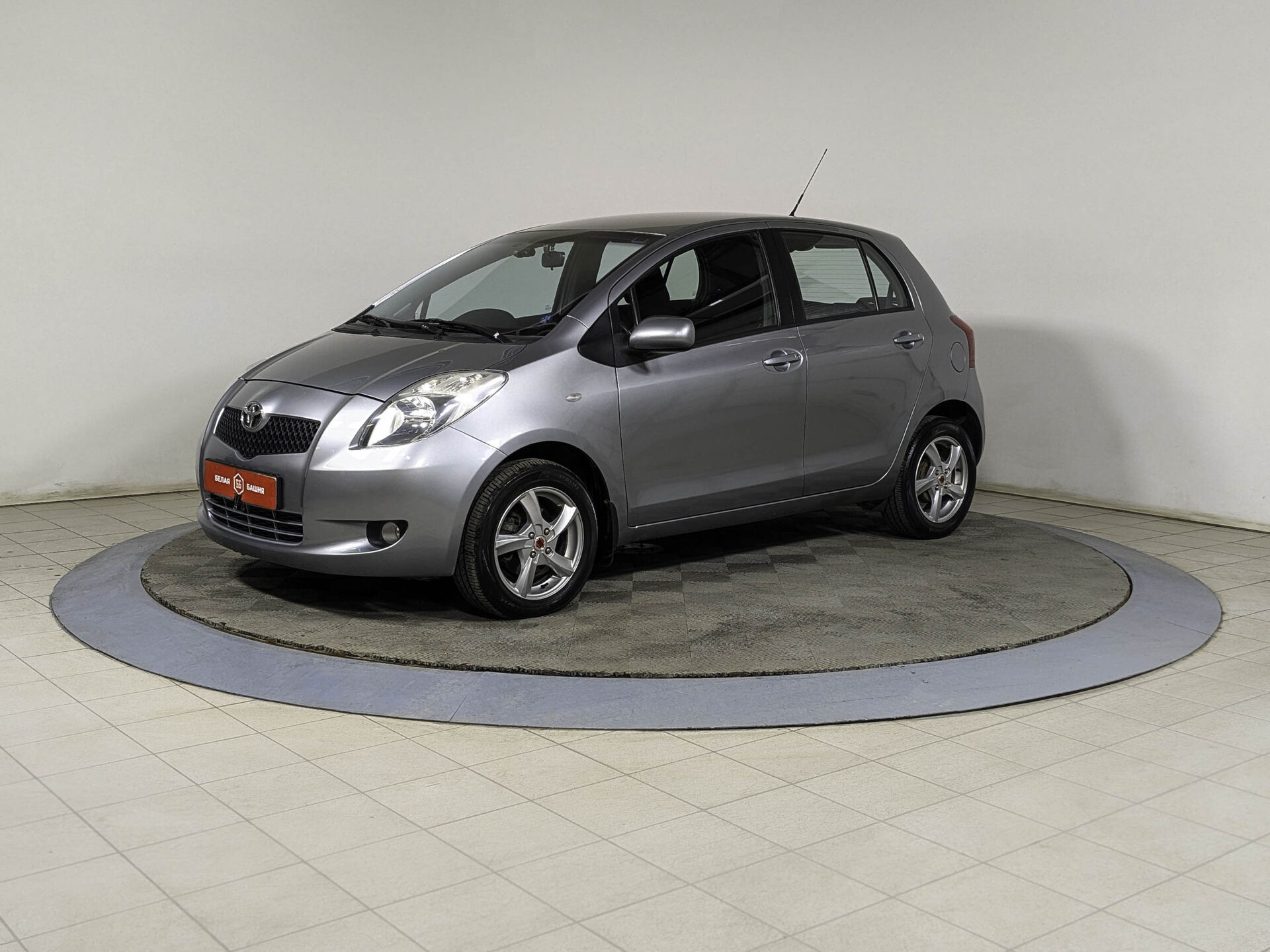 Автомобиль Toyota Yaris с пробегом 133 000 км, хэтчбек 5 дв. 2008 года выпуска. Цвет кузова серый, коробка передач робот, передний привод, левый руль. Двигатель 1.3 л. с мощностью 87 л.с.