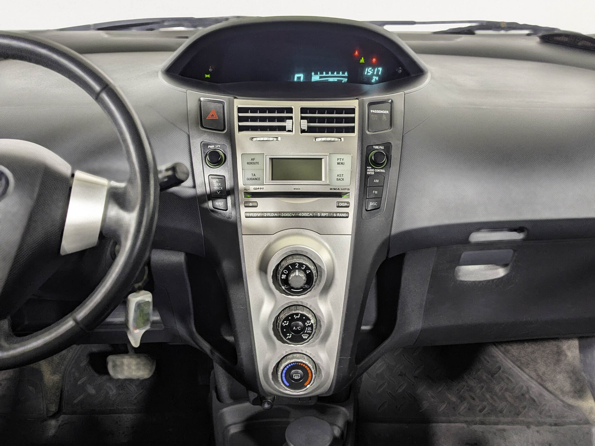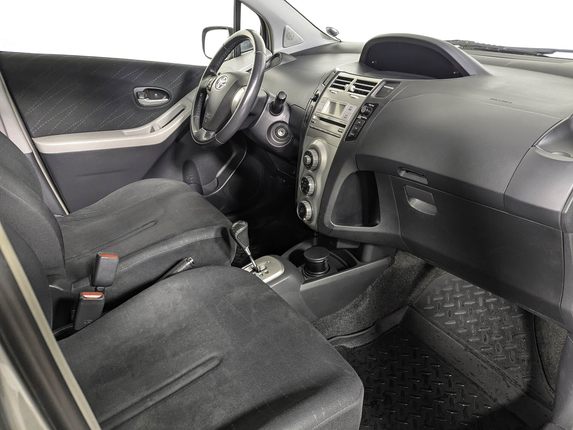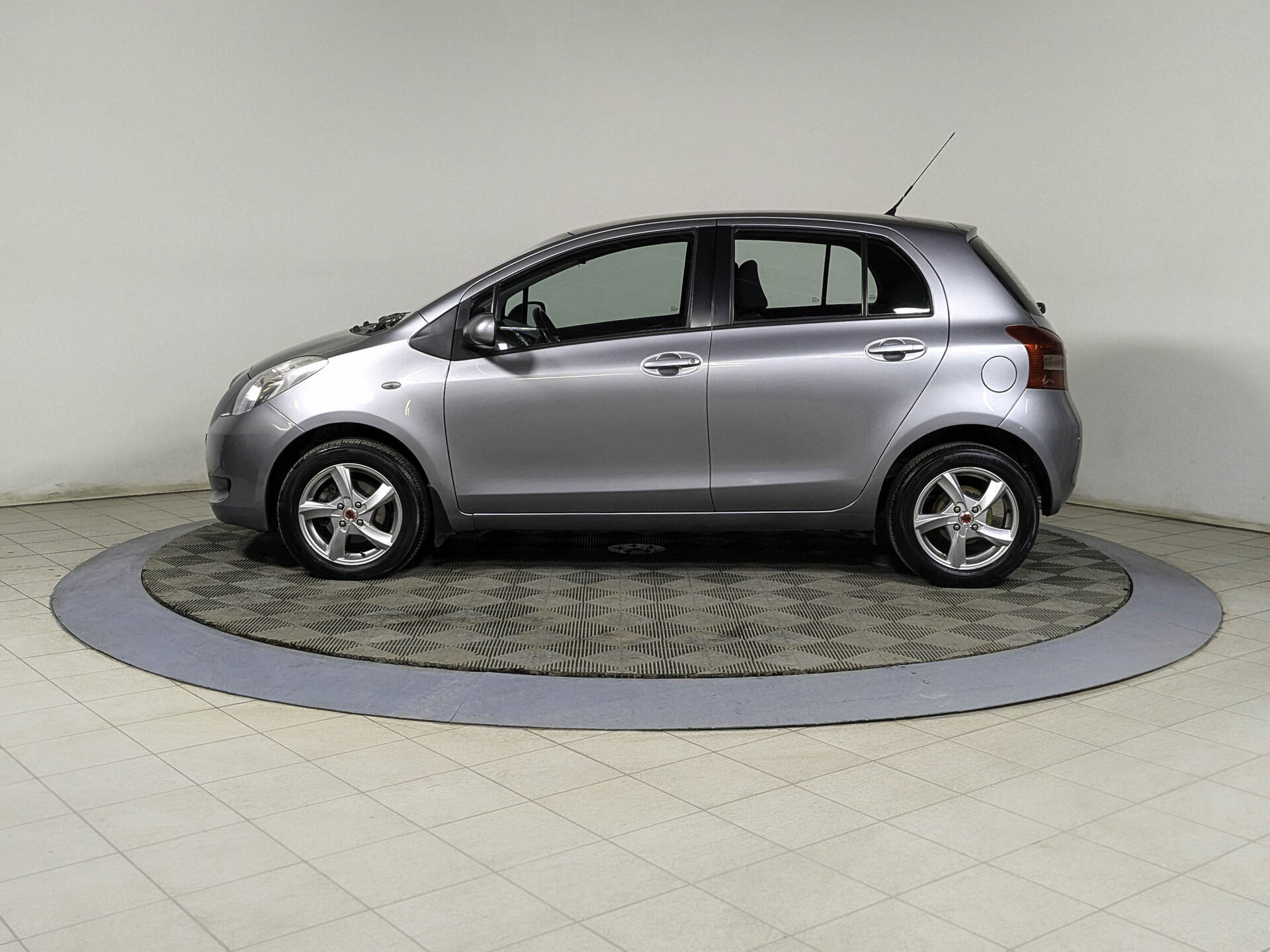 Автомобиль Toyota Yaris с пробегом 133 000 км, хэтчбек 5 дв. 2008 года выпуска. Цвет кузова серый, коробка передач робот, передний привод, левый руль. Двигатель 1.3 л. с мощностью 87 л.с.
