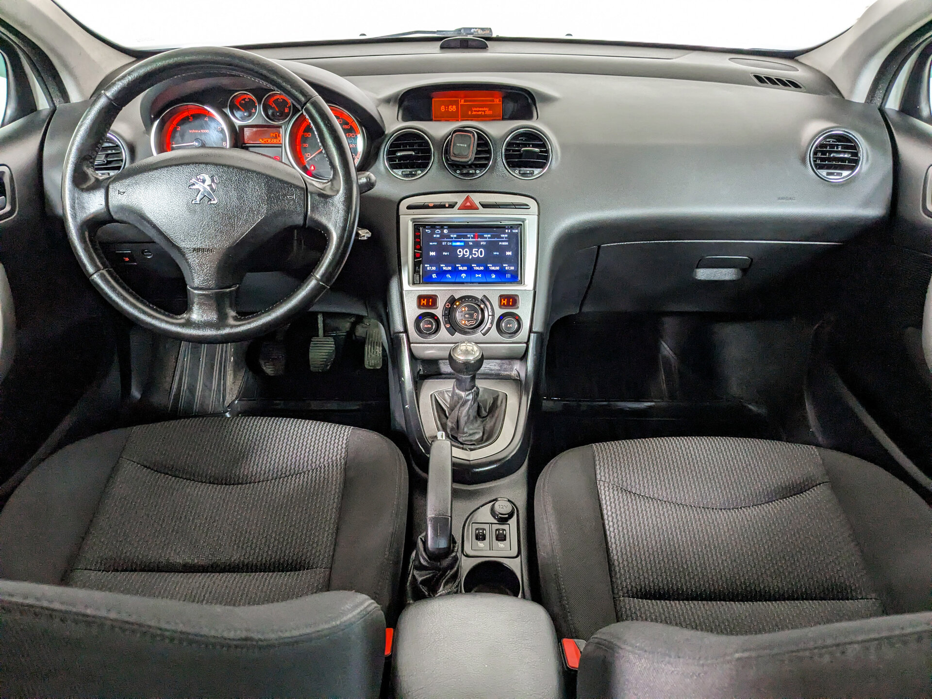 Автомобиль Peugeot 408 с пробегом 206 000 км, седан 2012 года выпуска. Цвет кузова белый, коробка передач механика, передний привод, левый руль. Двигатель 1.6 л. с мощностью 110 л.с.