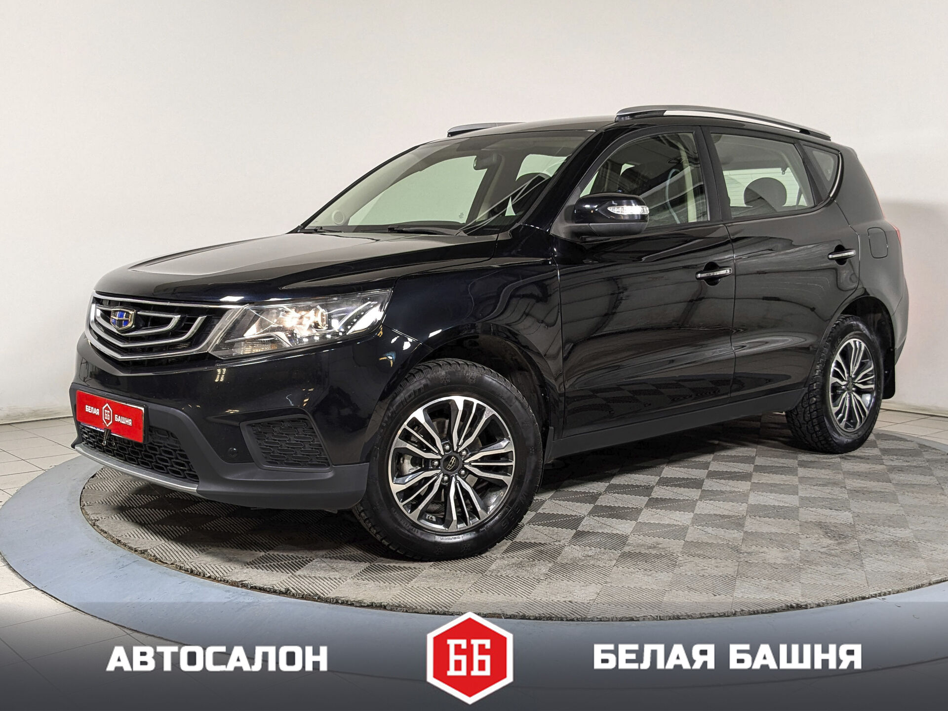 Автомобиль Geely Emgrand X7 с пробегом 107 000 км, внедорожник 2019 года выпуска. Цвет кузова черный, коробка передач автомат, передний привод, левый руль. Двигатель 2.0 л. с мощностью 139 л.с.