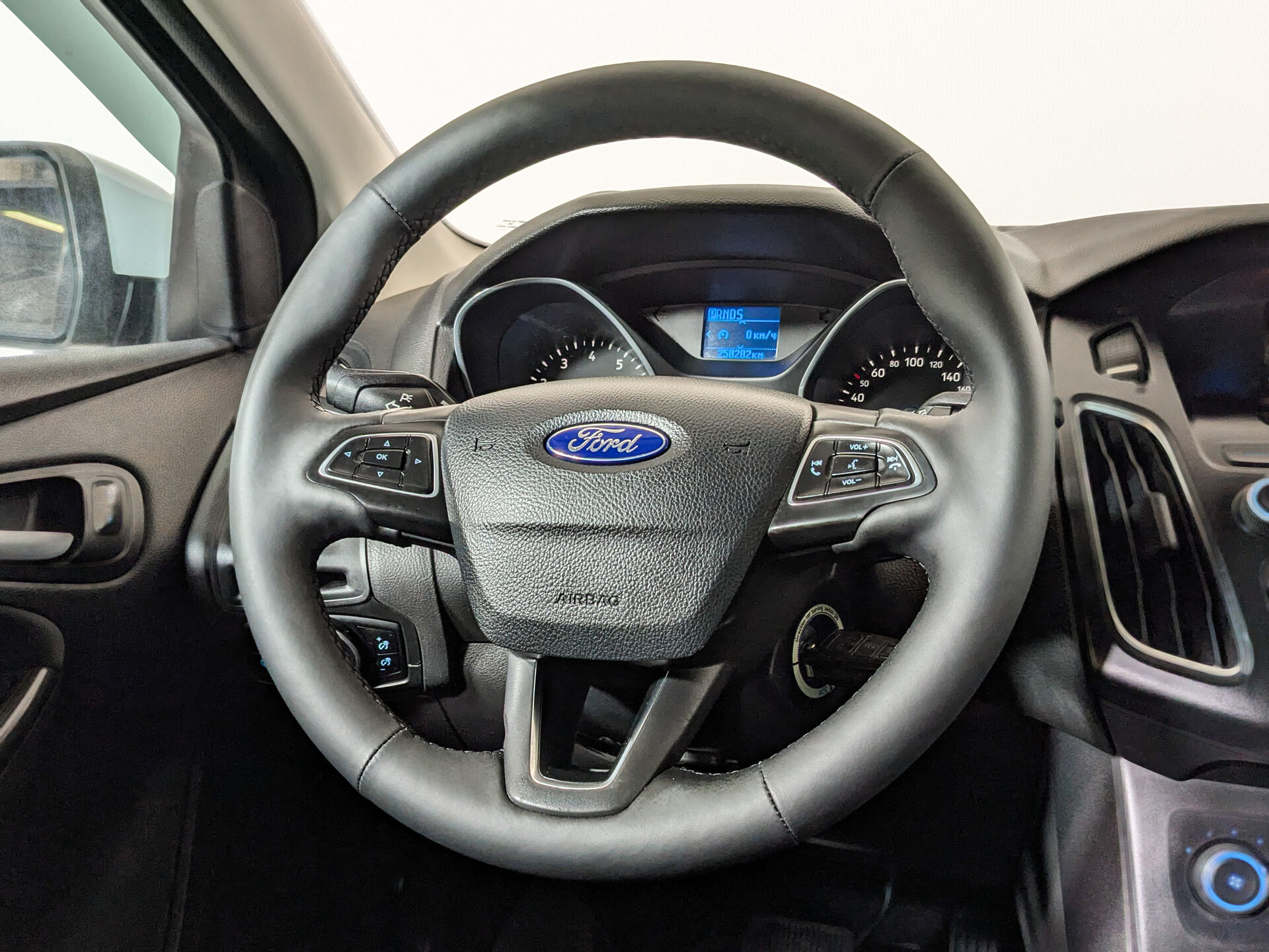 Автомобиль Ford Focus с пробегом 255 000 км, универсал 2016 года выпуска. Цвет кузова белый, коробка передач робот, передний привод, левый руль. Двигатель 1.6 л. с мощностью 105 л.с.